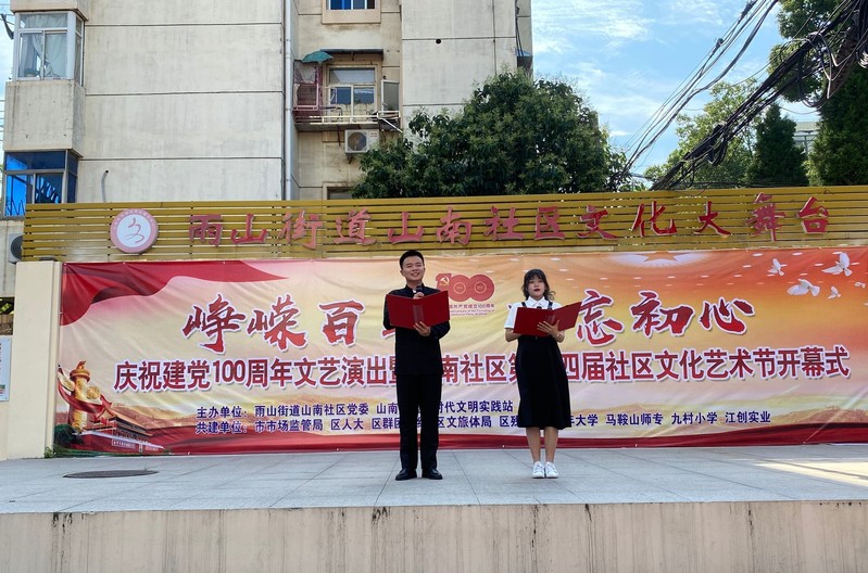 本网讯 为庆祝中国共产党成立一百周年,回顾党的光辉历程,讴歌党的丰功伟绩,雨山街道山南社区党委邀请共建单位,马鞍山师范高等专科学校教师教育系前往社区参加“峥嵘百年 不忘初心”庆祝建党100周年文艺演出——暨山南社区文化艺术节开幕式活动。教师教育系党总支副书记吴德琴与学生志愿者参加了此次活动。