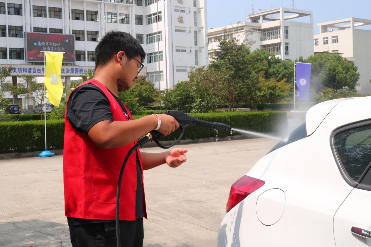 中午十二点,烈日炎炎下,志愿者们相互合作,合理分工,发挥不怕脏、不怕累的优良作风,在教师节这一天为全校教职工义务洗车。在这个特别的日子里,同学们用这种方式向马鞍山师范高等专科学校全体教师致以最真挚的感激之情。