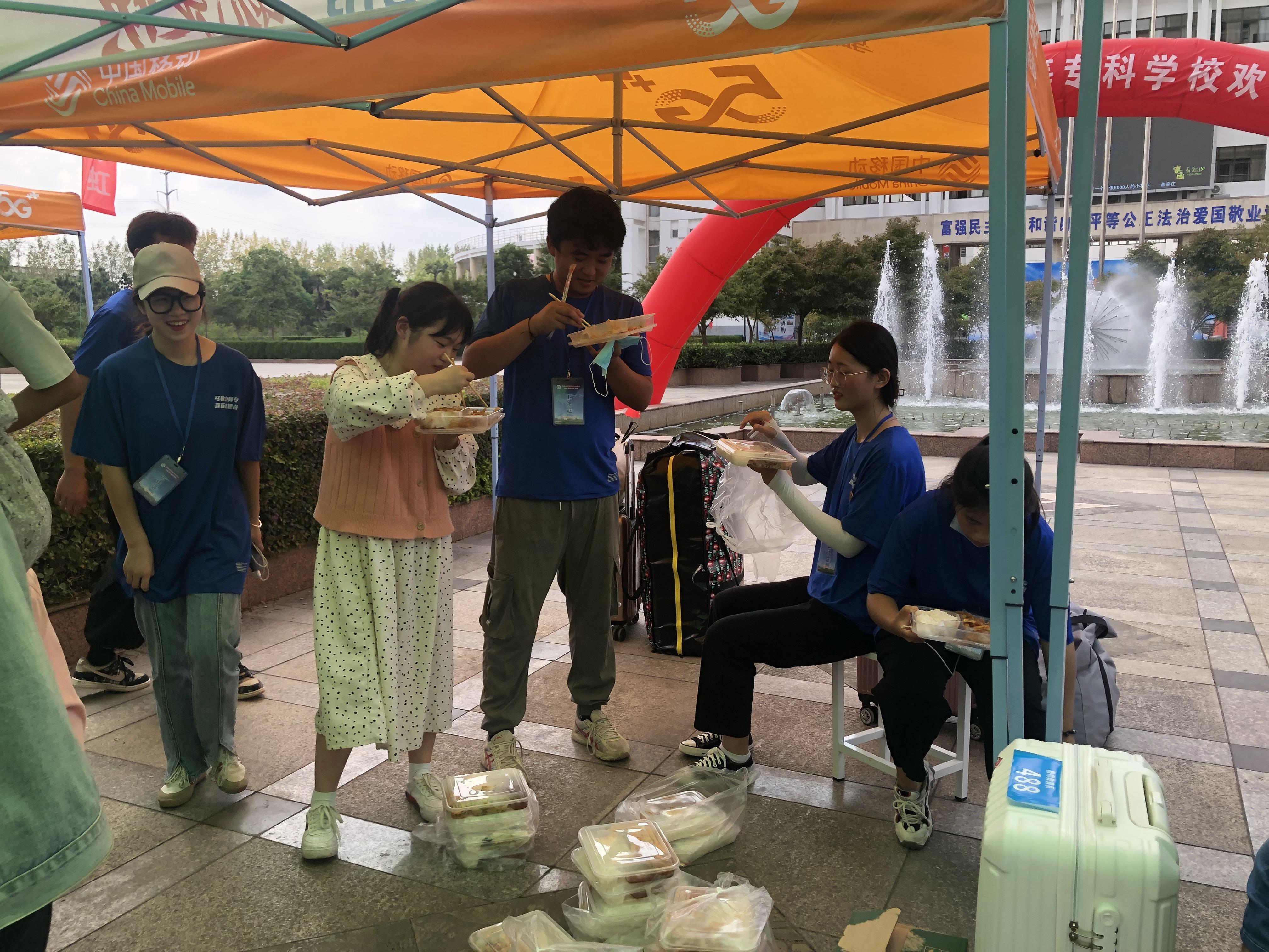 中午时分,换岗不离岗。充分利用迎接新生的空挡,赶紧吃几口午饭。活跃在迎新站点、辅导员报到点、行李运送点的志愿者们忙碌的身影,让新同学切实感受到了该系部学长学姐和老师们的热情与关爱。