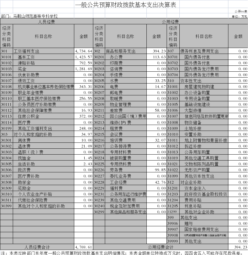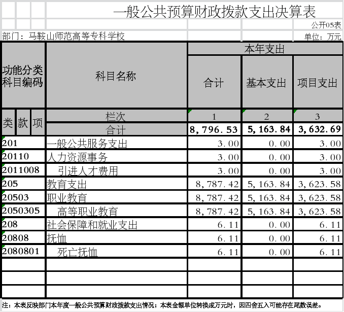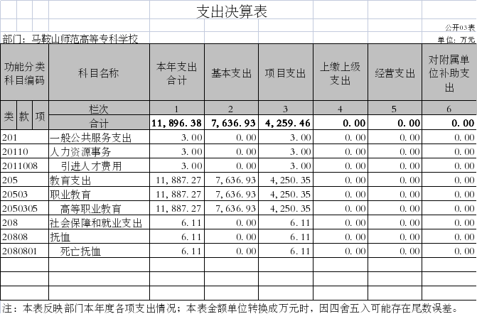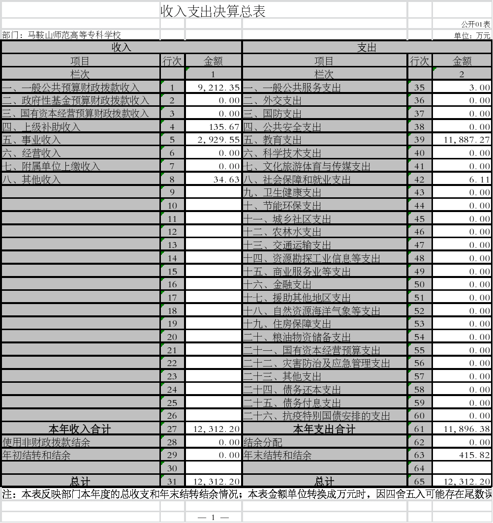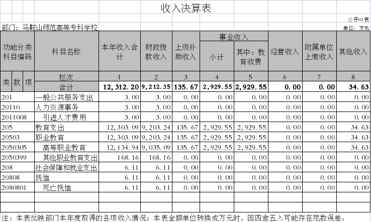第二部分 马鞍山师范高等专科学校2020年度单位决算表