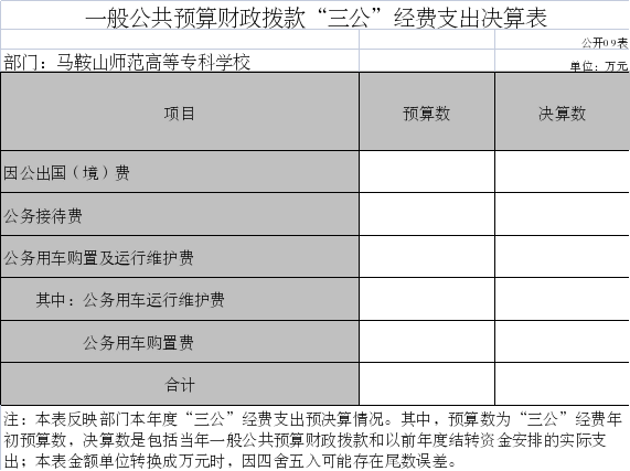 马鞍山师范高等专科学校2020年度一般公共预算财政拨款“三公”经费支出预算为0万元,支出决算为0万元。