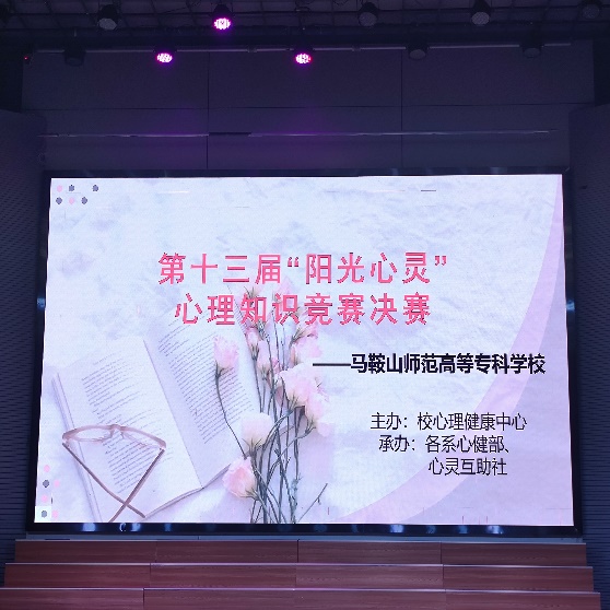 本网讯 12月10日晚六点,由马鞍山师范高等专科学校心理健康中心主办,各系心理部和心灵互助社承办的第十三届“阳光心灵”心理知识竞赛决赛在校音乐厅举行。校心理健康中心负责人袁焱、旅游与外语系团总支书记陈盼盼、艺术设计系团总支书记王昀等受邀担任比赛评委。