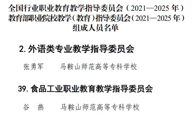 热烈祝贺我校张勇军获选教育部职业院校教学(教育)指导委员会委员;谷燕获选全国行业职业教育教学指导委员会委员。