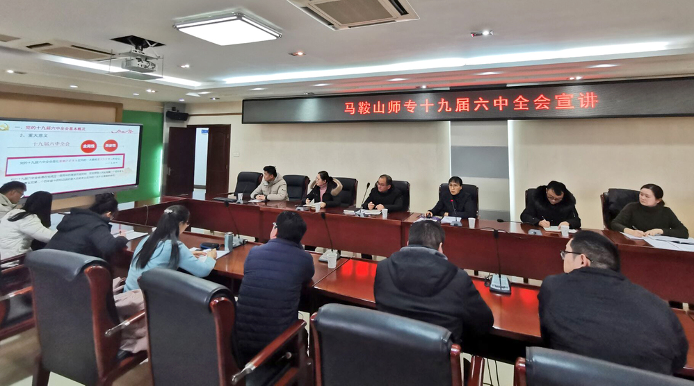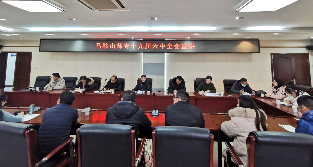 本网讯 为深入贯彻落实、传达学习党的十九届六中全会精神,更好地引导广大教师全面准确把握全会精神,12月31日下午,马鞍山师范高等专科学校党委副书记、校长刘淑凤为所联系的经济与社会管理系开展党的十九届六中全会精神宣讲。会议由系党总支书记胡风明主持。