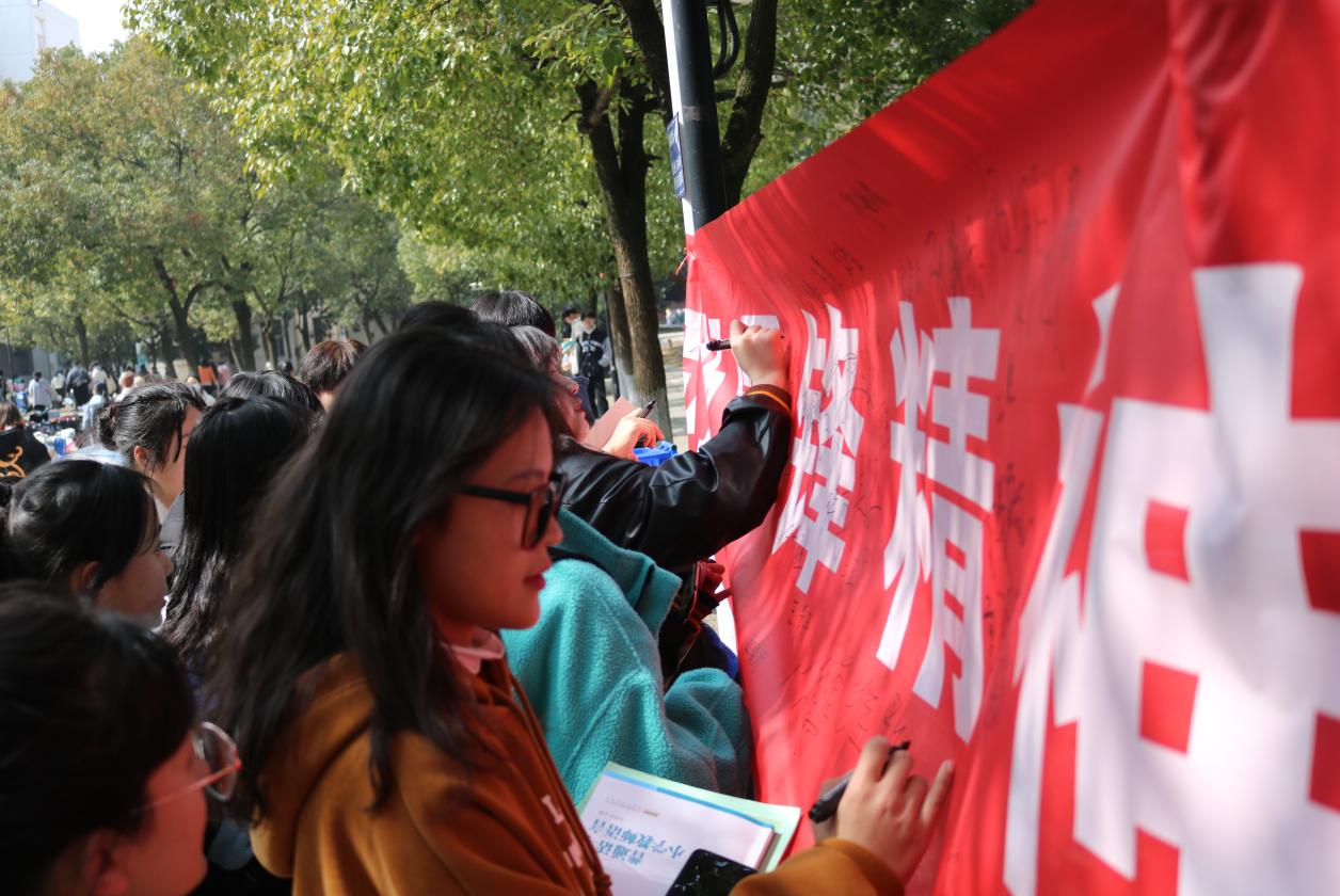 本网讯 为了响应“雷锋月”学雷锋号召,大力学习、弘扬和践行雷锋精神,建立和谐互助的文明校园。3月2日,校青年志愿者服务队、校学生会联合开展了以“弘扬雷锋精神,献礼建团百年”为主题的横幅签名活动,以此来动员更多的青年学子参与到学雷锋的队伍中。