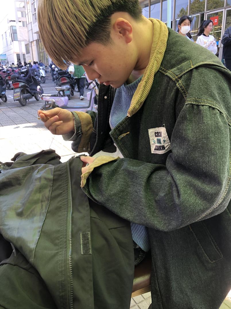 接下来的两天里,服装设计专业的志愿者们凭借专业技能为师生解决生活中的衣物缝补问题。此次活动吸引了全校师生的关注,不少同学将衣物拿来缝补,小到一粒扣子,大到一根拉链,服装班的同学们都尽心尽力、一针一线地去对待着每一件衣物,共缝补了30多件衣物。其间,活动还吸引了一位食品工程系的女生,自愿加入到学雷锋活动中,一起为师生们服务。