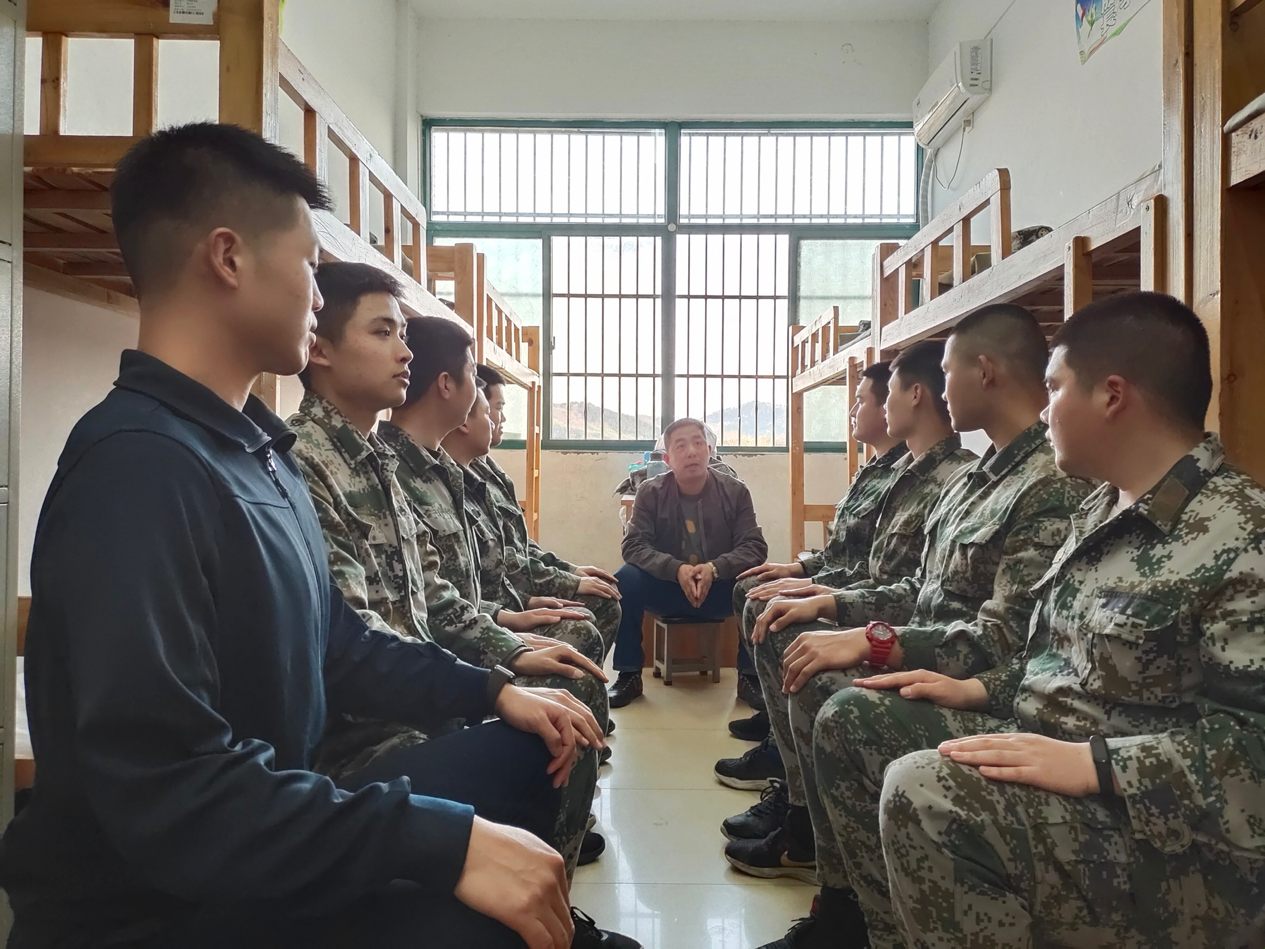 胡军对参加役前集训的学生所在基地的生活、学习、训练等情况作了详细的了解,他要求同学们在军营里,要团结官兵,扎根基层,刻苦训练,眼睛里要有活,多做一些力所能及的事情。作为一个合格的军人,要以服从命令为天职,自觉接受祖国挑选,奔赴军训锻炼成才。希望全体役前集训学生都能好好学习,努力训练,磨练自己。当兵不习武,不算尽义务,武艺练不精,不算合格兵。学校退役军人杨宏宇向役前集训的学生分享了军营生活。慰问团还现场观看了役前集训新兵餐前同军歌,肯定了大家良好的的精神面貌。