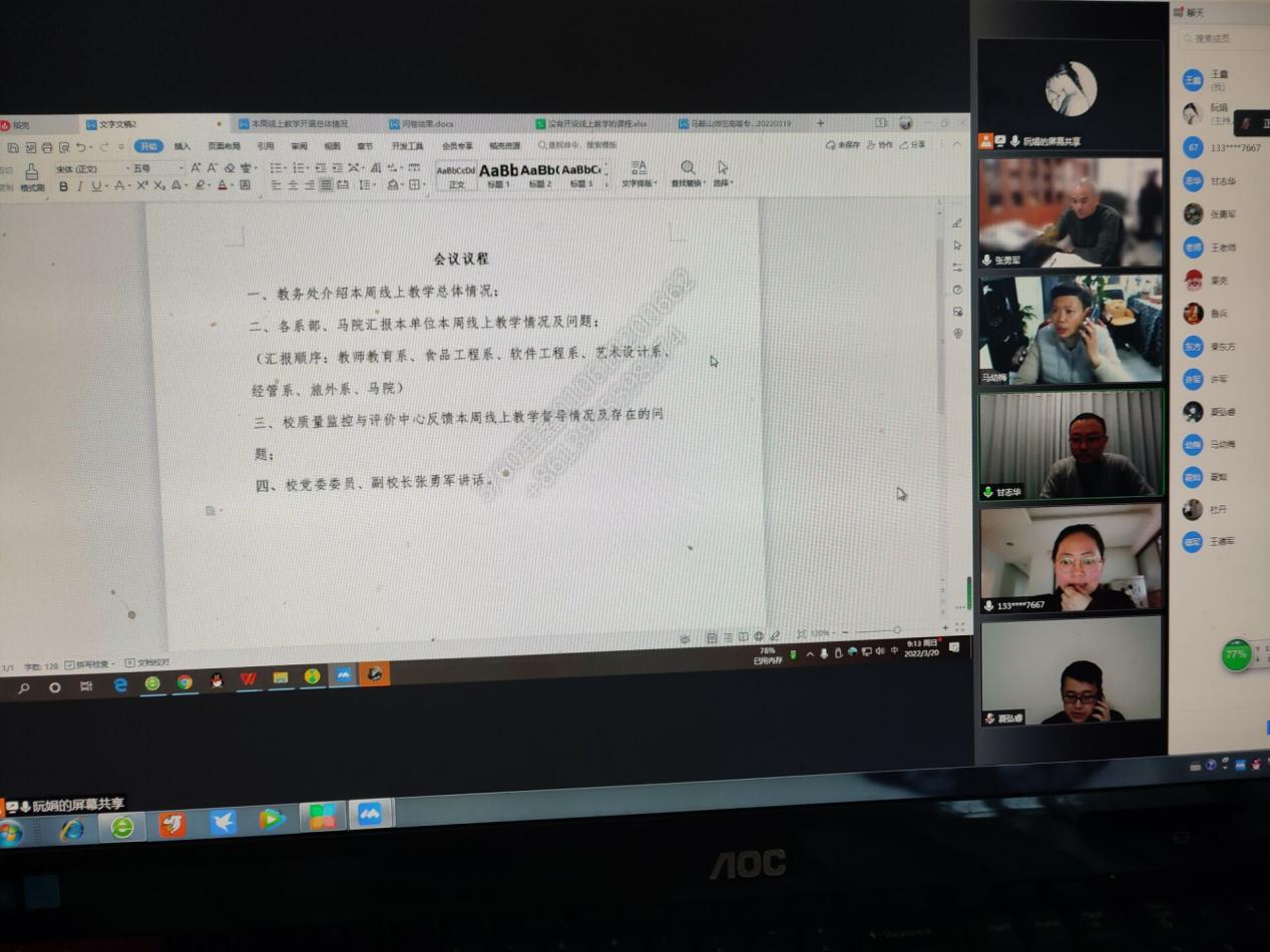 各系部(学院)就本周线上教学情况进行了详细汇报和经验分享。一周以来,各系部(学院)整体教学情况良好,绝大多数教师采用学习通、钉钉、QQ、腾讯会议等平台开展教学,以直播教学为主,其他教学手段为辅,学生整体学习情况较为稳定。各系部(学院)结合自身实际,扎实细致地组织开展线上教学工作,如要求教师每天完成线上教学问卷调查,第一时间了解并解决问题;调整实训课程安排,确保实训课教学效果;开展线上随机听课,实时了解线上教学真实情况;开展线上教学情况调研,了解师生的线上教学现状;要求任课教师按时完成线上考勤,教学过程全程录屏,不断更新积累教学过程性资料;开放实训室供学生线下实操,教师线上提供指导;深入学生寝室和教学区实际了解学生学习情况;做好校外实习学生情况每天零报告等。同时各系部也交流讨论了线上教学存在的问题,如学生普遍反映网络卡顿、流量不足,尤其是实践类课程线上教学效果不佳,课堂实时监管难度大,分散教学不利于辅导员管理,非宿舍区域没有宽带不利于线上学习等。