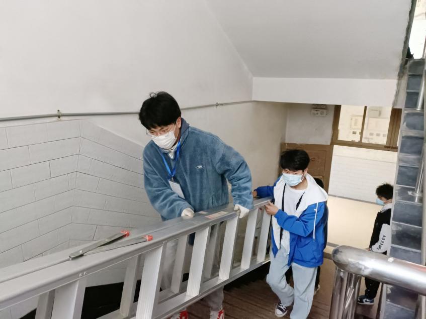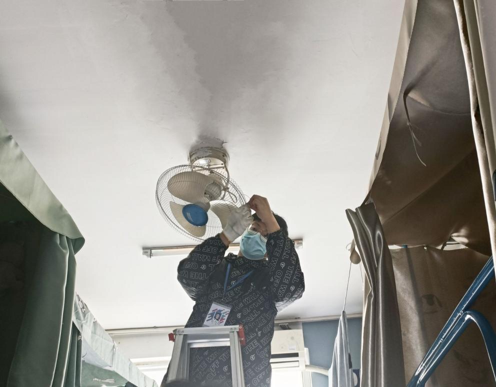 宿舍的电风扇由于安置在房顶,一直是卫生清洁的死角,尤其是对女生而言,艺术设计系此番行动,就是为同学们解决这一难题的。上午九时,老师们与志愿者们在宿舍楼下集合,一同前往艺术设计系学生宿舍进行电风扇的拆洗工作。学生会主席张哲在活动前进行了人员分配工作,志愿者们按照分工,带着工具,前往需要进行电风扇拆洗的宿舍。