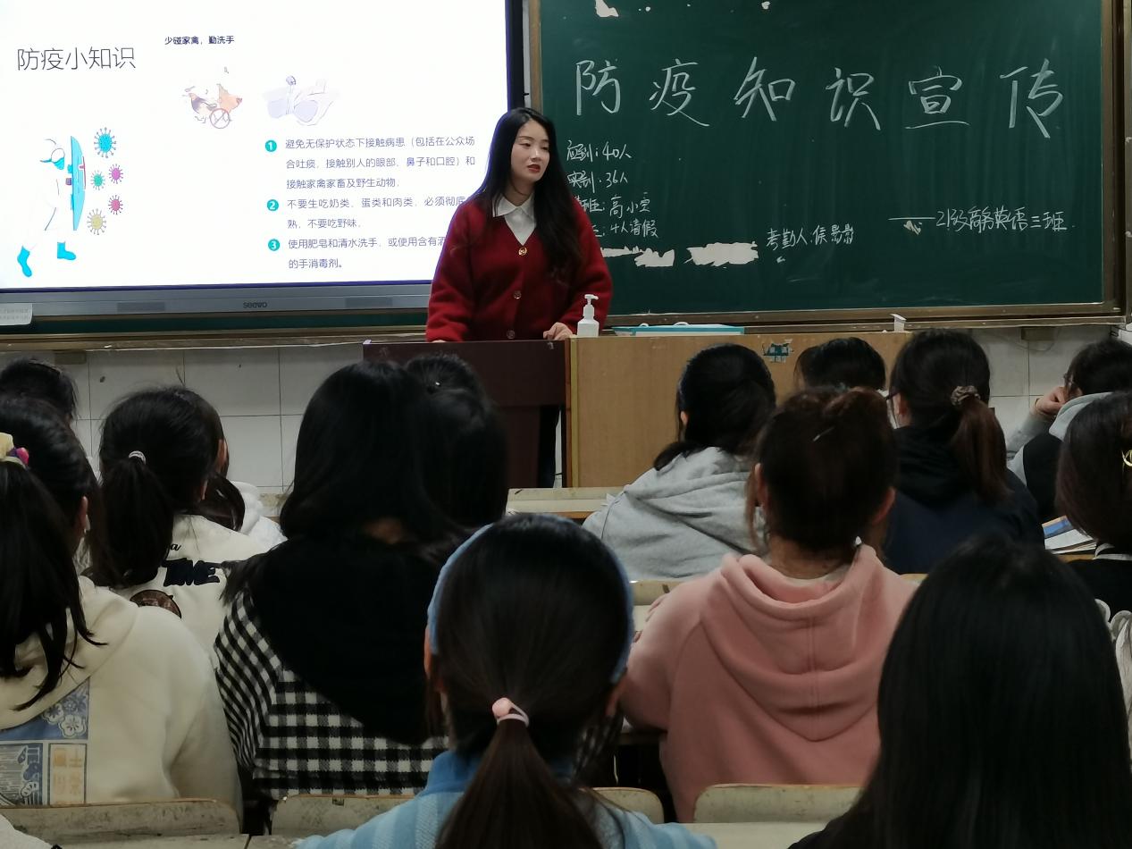 在班会上,为了帮助同学们快速掌握新冠和防疫知识,各班级都精心制作了PPT,结合生动的图片、视频和主持人的精彩讲述,同学们进一步掌握了有关疫情防控的知识。对于校园防控管理规定,各班也做了详细的讲解,内容包括一日三测、寝室通风、避免大规模聚集、减少外出、发热要及时上报等。系辅导员朱青老师提醒同学们,疫情尚未结束,防控不能松懈,希望同学们严格遵守校园防控管理规定,团结一致,共同打赢这场疫情防控战。