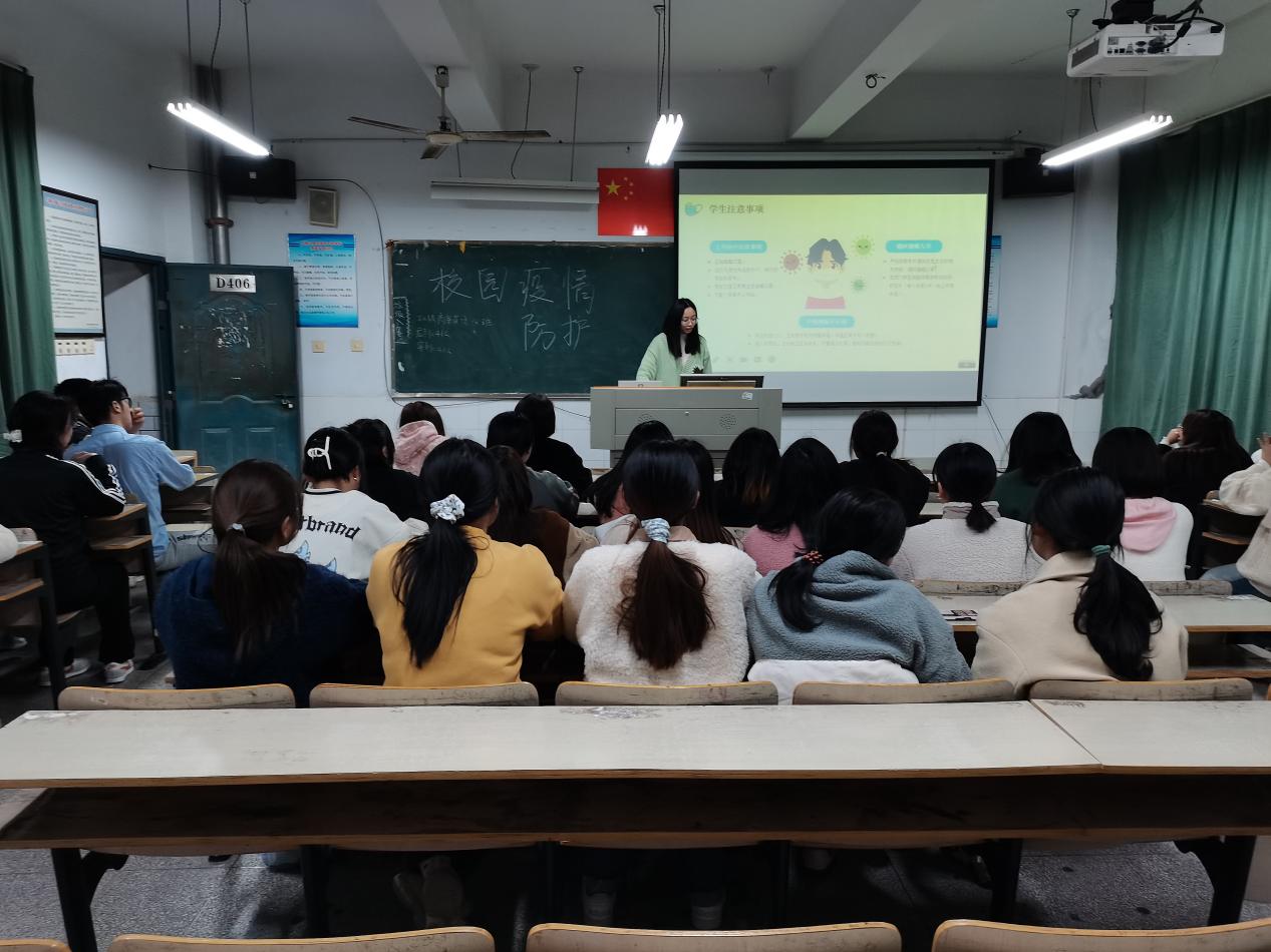 本网讯 为增强大学生疫情防控意识、普及防疫知识、提升自我防护能力,形成校园疫情防控合力,3月8日晚,旅游与外语系组织开展了“疫情防控知识及校园防控管理规定”主题班会,大一、大二各班级都参加了此次班会。
