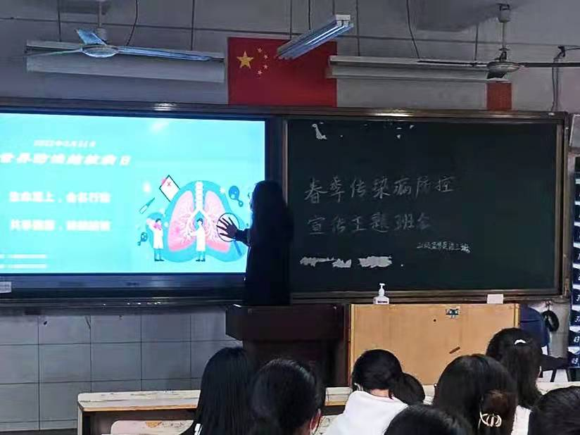为了开好此次班会,各班宣传委员之前进行了充分的准备,依据搜集的资料制作了生动形象的PPT。因为疫情关系,大部分班级采用线上的方式开展。各班宣传委员列举了结核病、流行性感冒、麻疹、水痘等常见的春季传染病,并对其临床表现、传播途径、治疗和预防措施做了详细介绍。有的班级还采用提问的方式,帮助同学们巩固所学的知识。最后,宣传委员告诉同学们,一旦出现症状,不要慌张,及时到正规医院就诊。