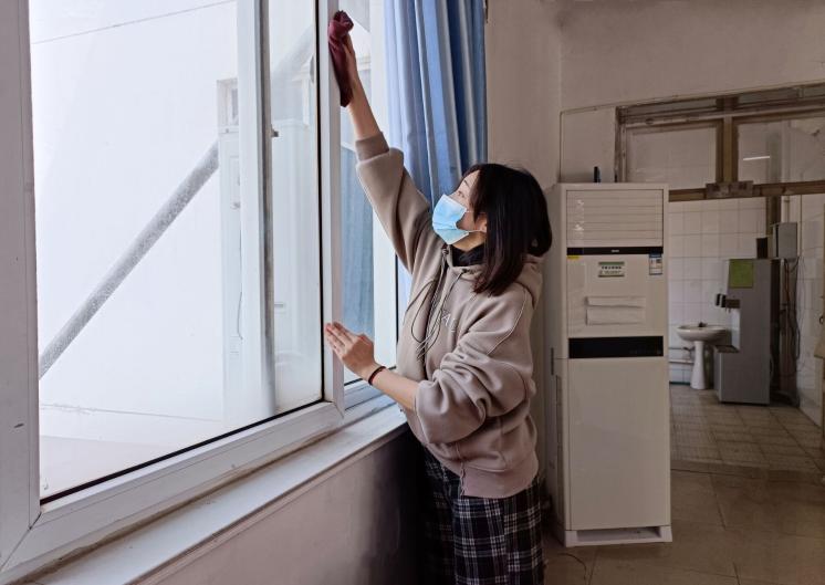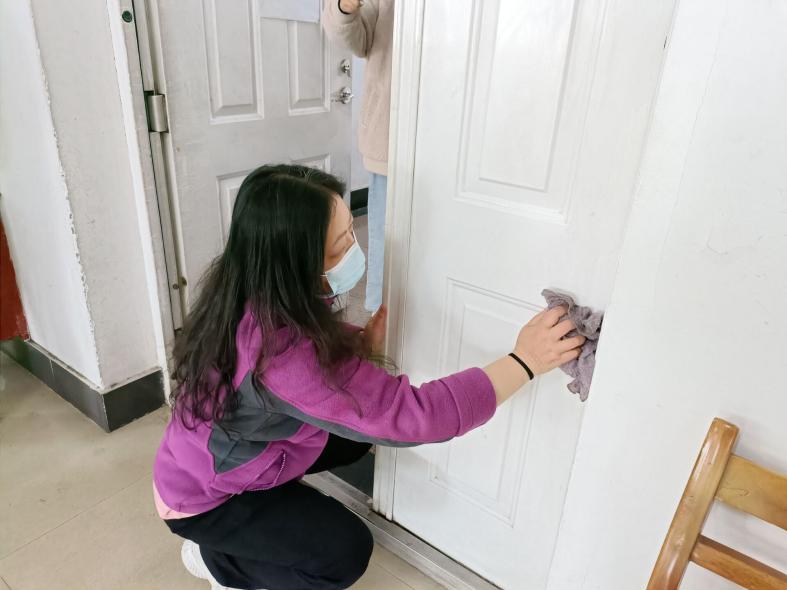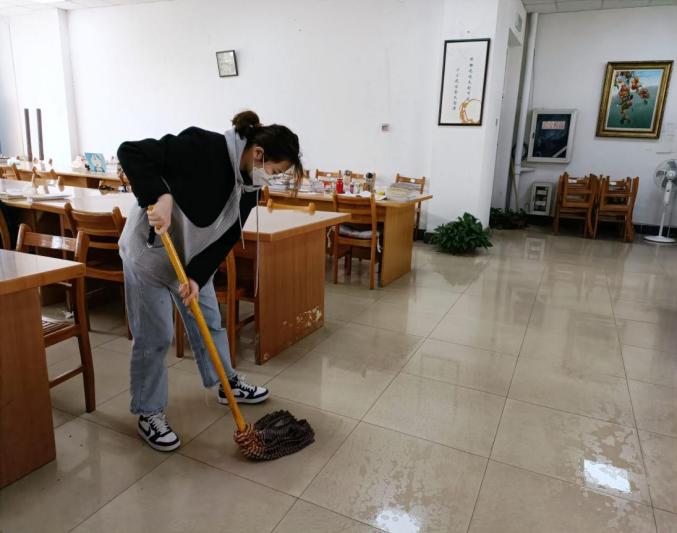 参加活动的同学们先认真聆听图书馆副馆长单守金的安排和要求,在明确注意事项后,迅速进入工作状态:一部分同学擦拭窗户与整理沙发的灰尘,另一部分同学打水拖地,对地面和部分死角以及每个楼层的楼梯和过道进行清理。