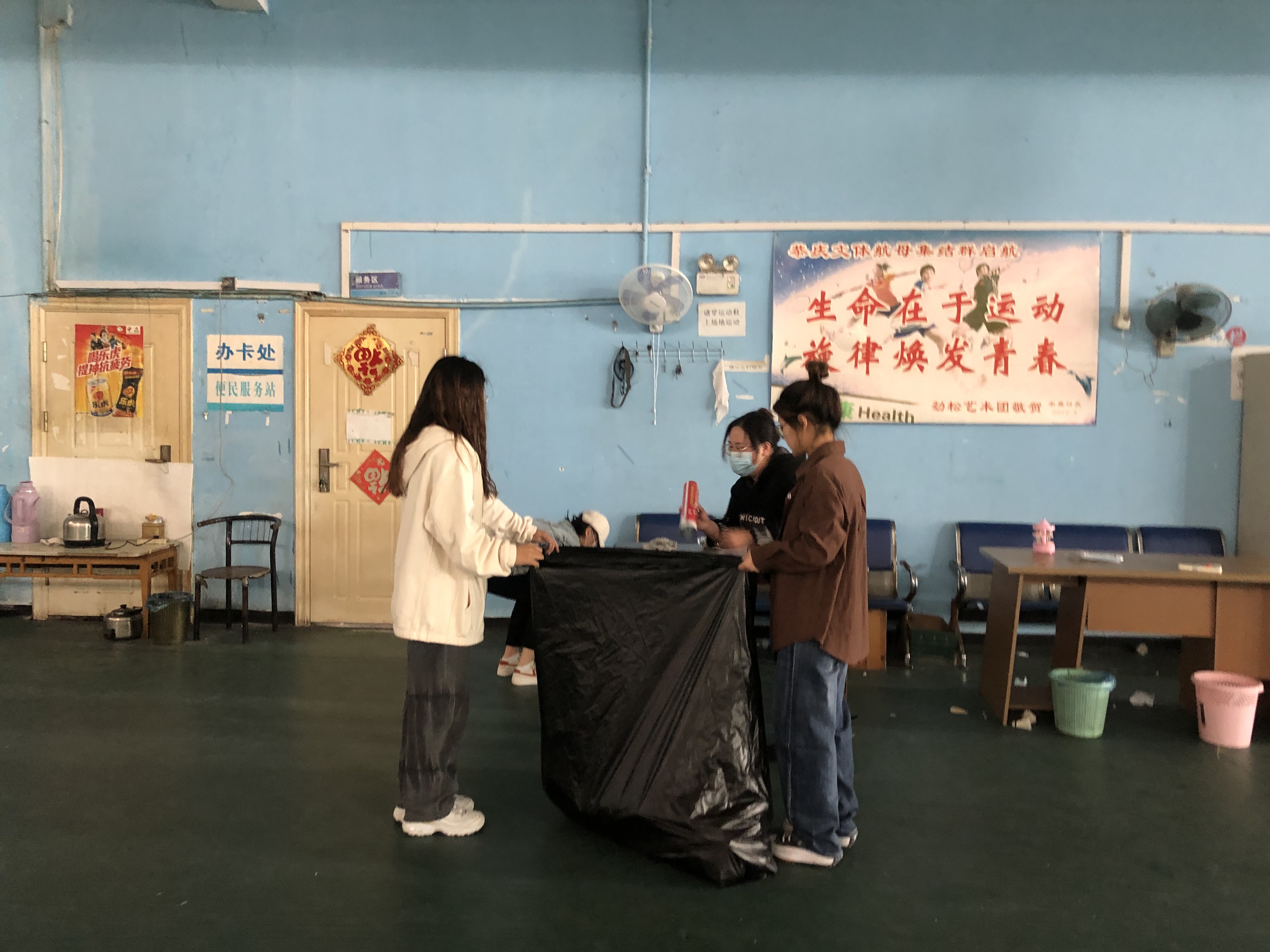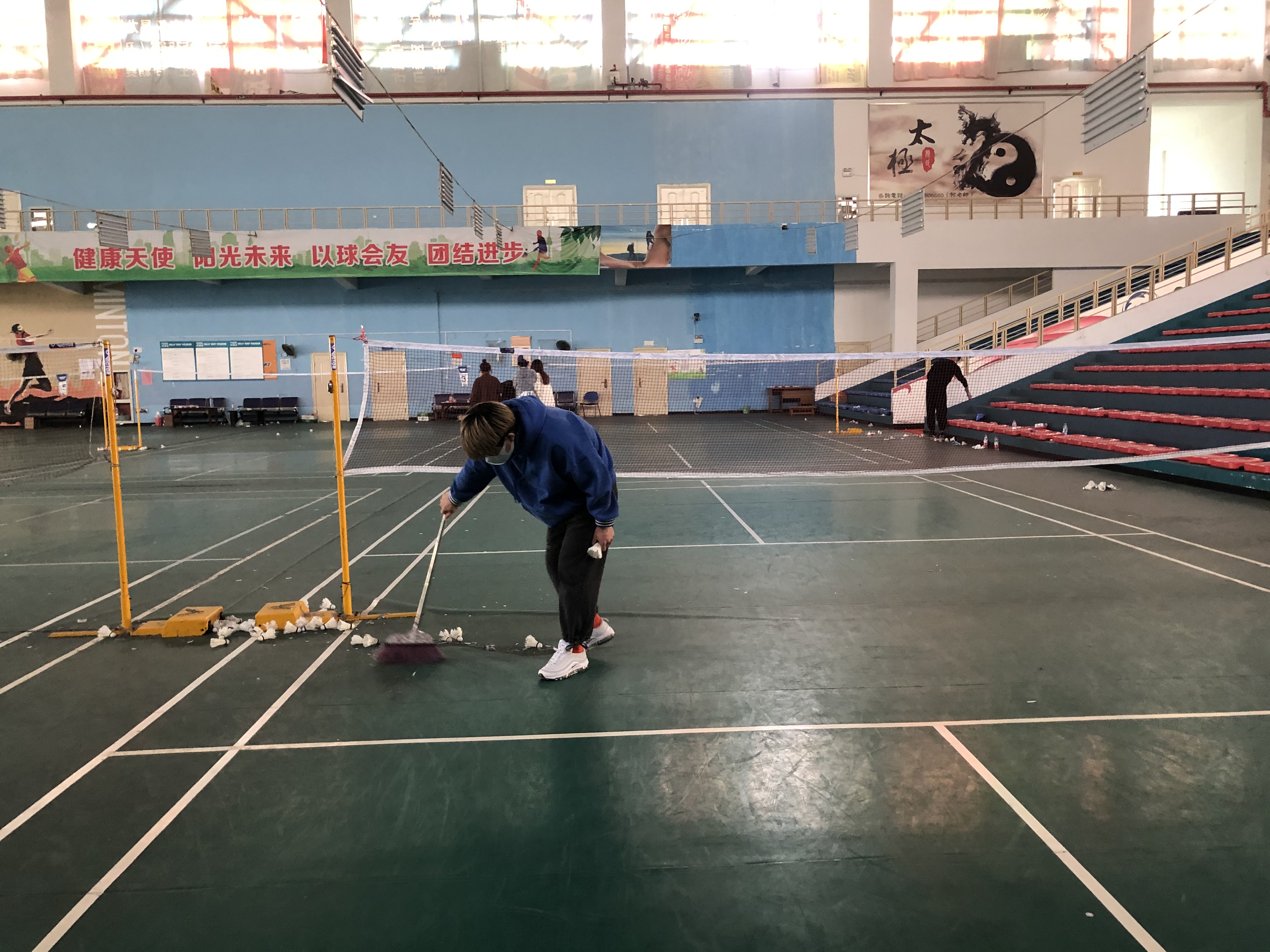 赛前,学生会学习部成员与运动员们共同将羽毛球馆打扫干净,这是继4月3日预赛以来,艺术设计系第二次清理羽毛球馆,同学们耐心地将垃圾清理干净,将桌面和地面打扫得一尘不染。