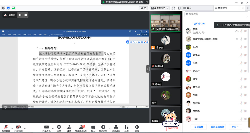 本网讯 为进一步提高我校教师教学能力,做好今年省教师教学能力大赛的备赛工作,4月24日晚6时,教务处邀请安徽警官职业学院刘辉教授和我校去年省赛一等奖获奖团队负责人韩芳勤、徐文艳和邢林宁老师分别进行了线上指导和经验分享。共计30余名参赛教师参加了本次培训。