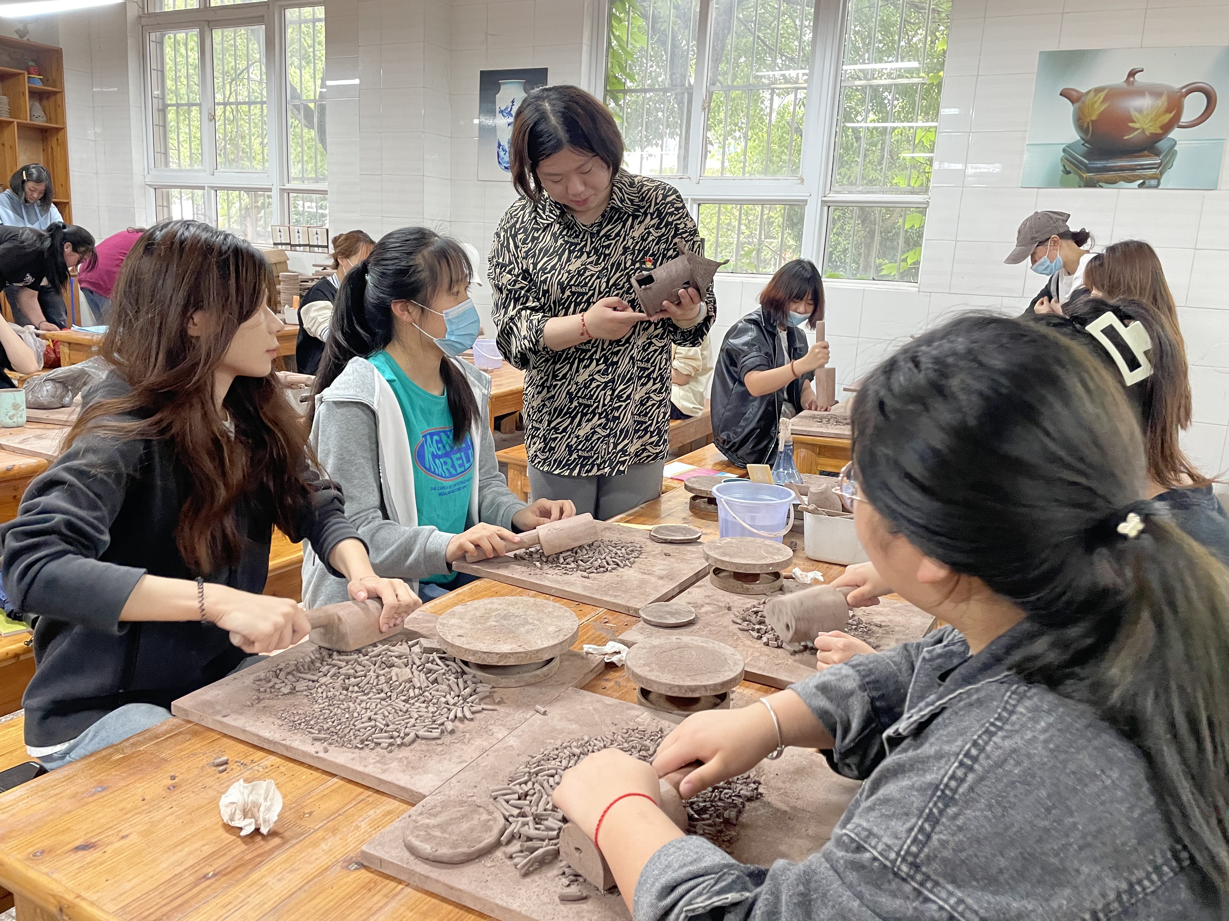 5月10日下午,“校优秀青年教师”陶瑞雪在丹青楼106教师上了一节《陶艺设计》公开课,内容是泥板成型,她利用往届的优秀作品作技法示范讲解,激发了同学们的设计与制作热情。在同学们制作的过程中,进行悉心的指导,一件件质朴的作品渐渐成型,展现在大家的眼前。