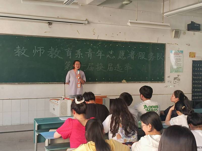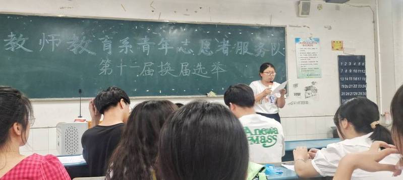本网讯 6月7日,教师教育系(基础部)青年志愿者服务队换届会议在修德楼306举行,系团总支书记冯金燕及第十一届青年志愿者服务队全体人员出席会议,会议由志愿者服务队文艺部潘岳主持。