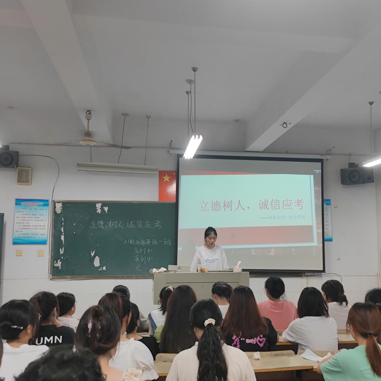 本网讯 临近期末,为严肃考风考纪,避免考试违纪现象发生,6月8日下午,旅游与外语系开展“诚信考试”教育主题班会活动。大一、大二所有班级都参加了此次活动。