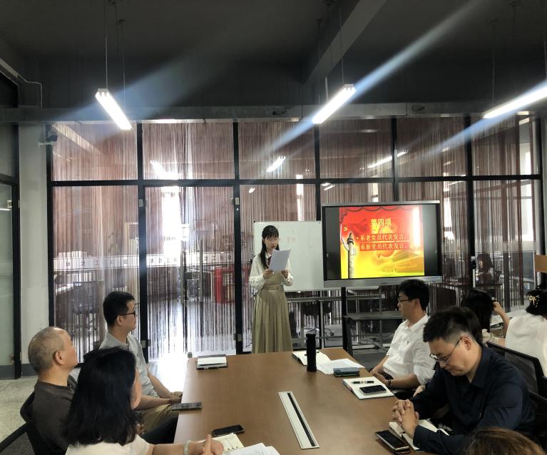 宣誓结束后,分别由系老党员代表、环艺教研室主任轩德军和系新党员代表、2020级动漫制作技术(1)班李文喆发言。轩德军表示:“共产党员的称号是光荣的,今天的承诺必须谨记于心、落实于行,希望新发展的党员同志可以带好头、今后的学习、工作中发挥先锋模范作用。”李文喆表示,自己作为预备党员代表发言非常荣幸,将本着全心全意为人民服务的宗旨,坚定政治信仰,做一名合格的党员。同时也将树立终身学习的观念,利用自己所学的科学文化知识更好的服务人民,奉献社会。