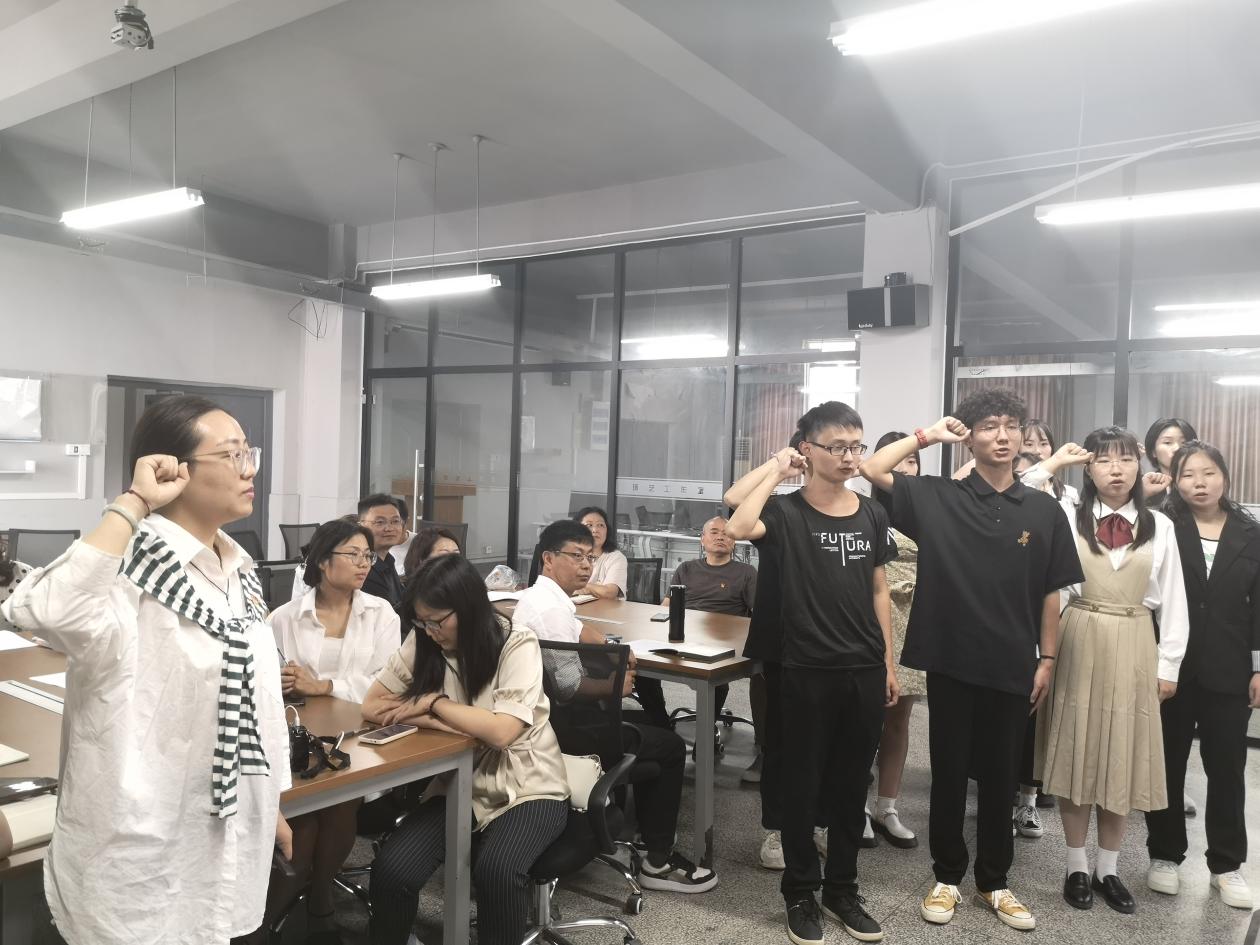 本网讯 为加强预备党员的党性意识,提升预备党员对政治教育的认同感,6月14日中午,艺术设计系党总支在丹青楼501举行2022年第一期预备党员入党宣誓仪式。校党委委员、副校长、统战部部长张勇军,系党总支负责人副书记吴德琴,总支委员夏弘睿、王昀,第一支部书记张梦、第二支部书记胡鑫及系部全体党员教师和9余名新发展的党员参加了本次宣誓仪式。系组织员蒋璐璐主持仪式。