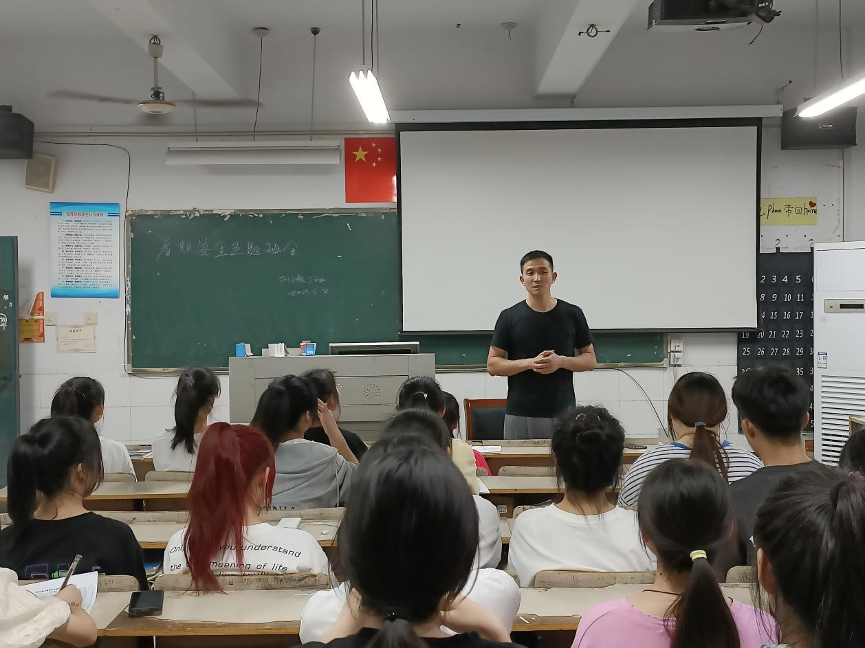 “生命至上、安全第一”,安全事关师生切身利益,是一切工作的前提,也是永恒的话题。活动中,各班级辅导员、班主任结合相关案例以案说法,就疫情防控、防诈骗、防溺水,交通、消防、食品卫生等校内外安全逐一分析,叮嘱同学们提高防范意识,掌握一定的防范技能。2020级小学教育6班班主任冯金燕表示:“安全工作需要大家的共同参加,互相督促、互相监督,发现问题及时反馈,积极寻求帮助。”她还提醒班级学生,暑假离校到家后,要及时向班主任报备。2020级数学教育班辅导员汪文君叮嘱道:放假后及时回家,到家后及时告知;路上注意安全,假期出行做好疫情防护;防溺水、防诈骗,时刻提高警惕……2020级小学教育5班班会上,辅导员王雨和同学们回顾了本学期的点点滴滴,虽然疫情限制了大家的出行,但也增进了辅导员和同学们之间的交流,交通、心理健康和电信诈骗之类的安全事件也少了。他希望大家守住好的成果,提高安全防范意识,做诚信公民、文明网民。