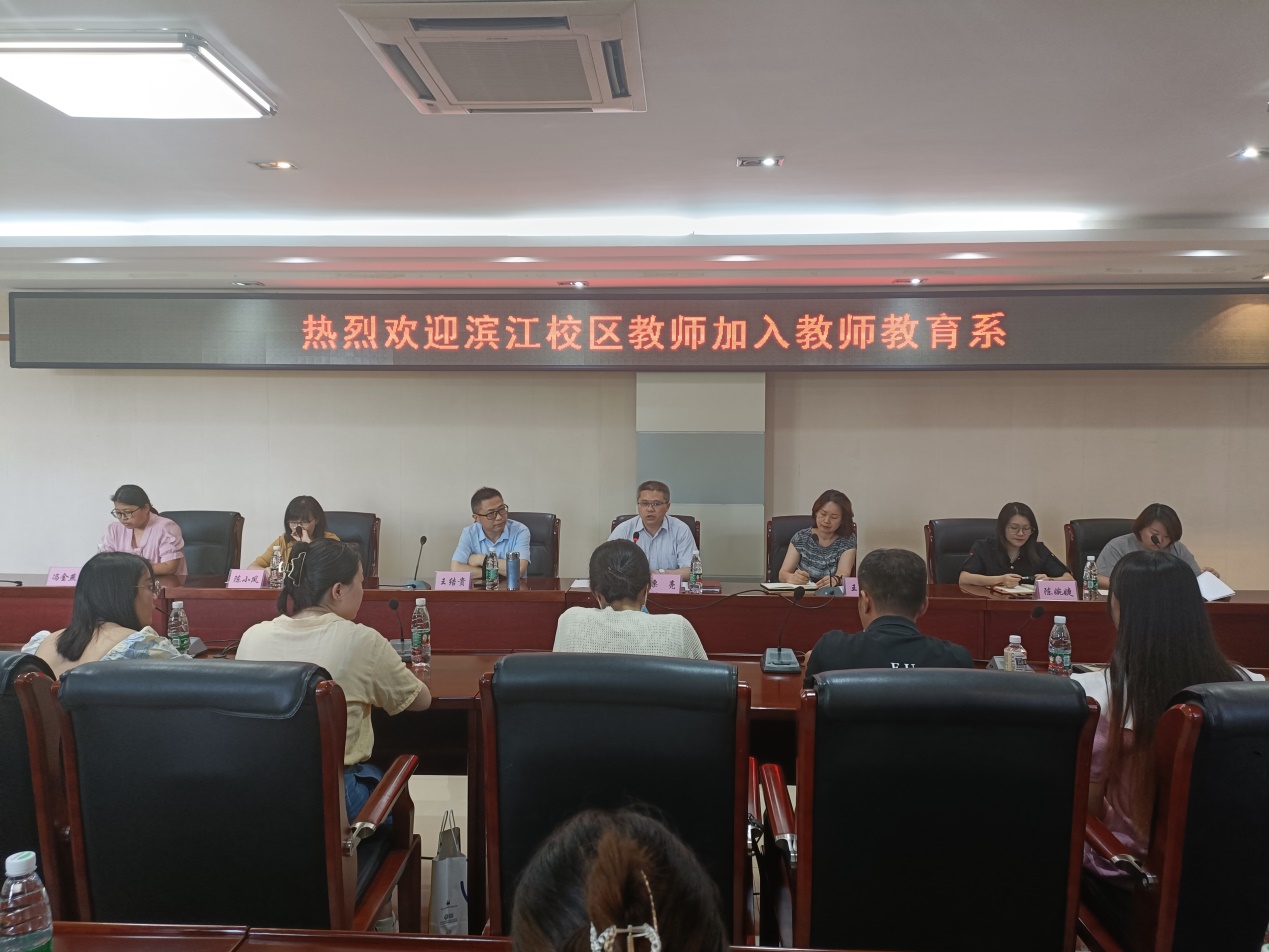 在滨江校区教师加入教师教育系欢迎会上,王结贵致欢迎辞,对滨江校区教师的加入表示热烈的欢迎和衷心的期待。栗亮介绍了学校、教师教育系现阶段的基本发展情况和升本工作进展情况,并强调雨山、滨江两个校区从现在起为一个整体、一个大家庭,新加入的教师应努力上进,尽快适应高校教育教学规律,积极参与两校区建设。会议结束后,两校区教师开展了交流研讨座谈。