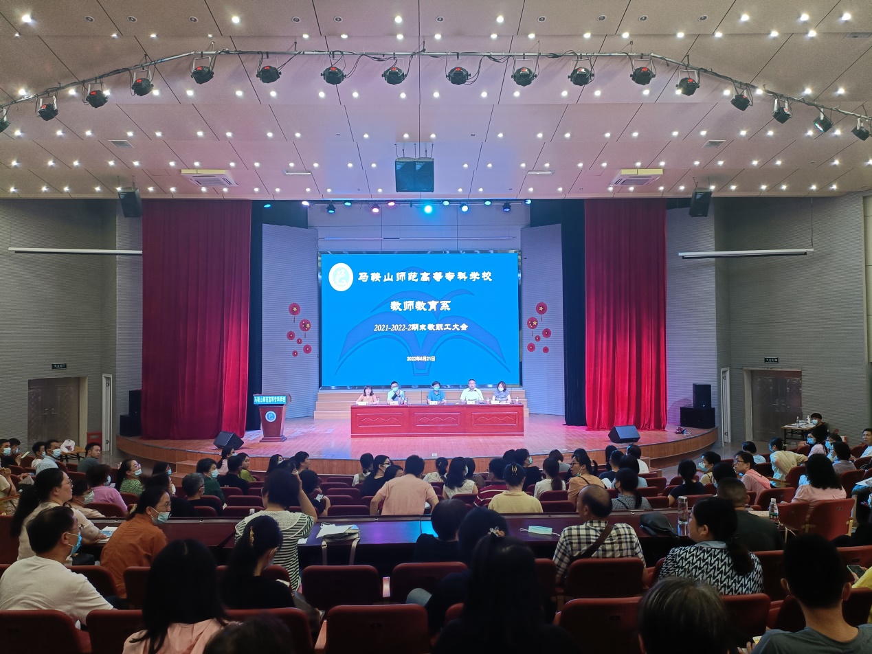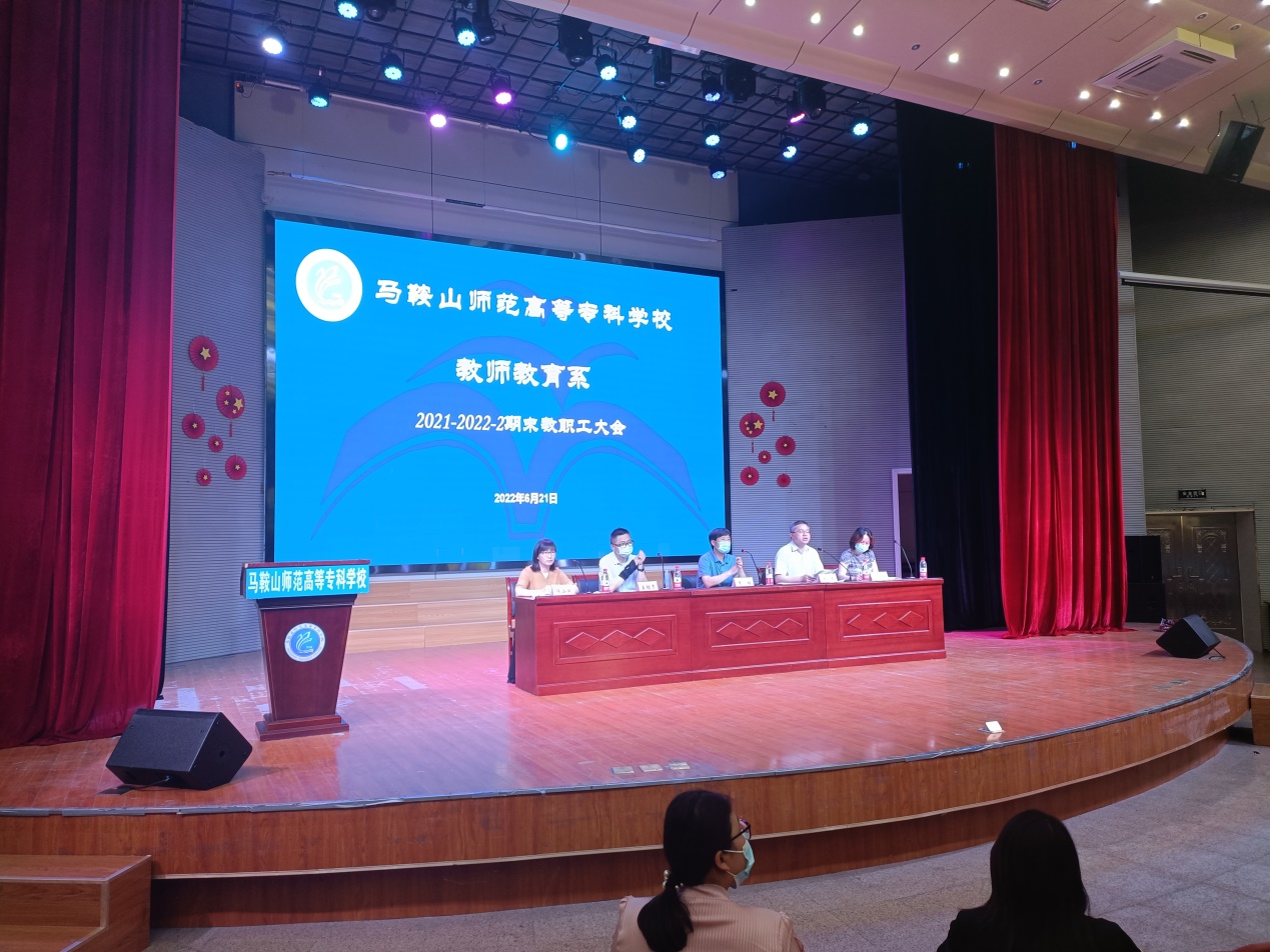欢迎会后,教师教育系在音乐厅召开2021-2022学年第二学期期末全体教职工会议。