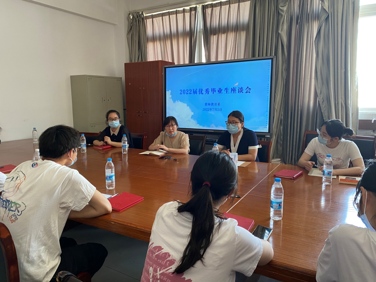为更好地收集毕业生对母校发展的意见与建议,推动学校人才培养工作的进一步提升,7月5日上午10:00,教师教育系(基础部)在C502召开了2022届优秀毕业生座谈会。该系部副主任陈小凤、团总支书记冯金燕和毕业班优秀学生代表参加了会议,会议由陈小凤主持。