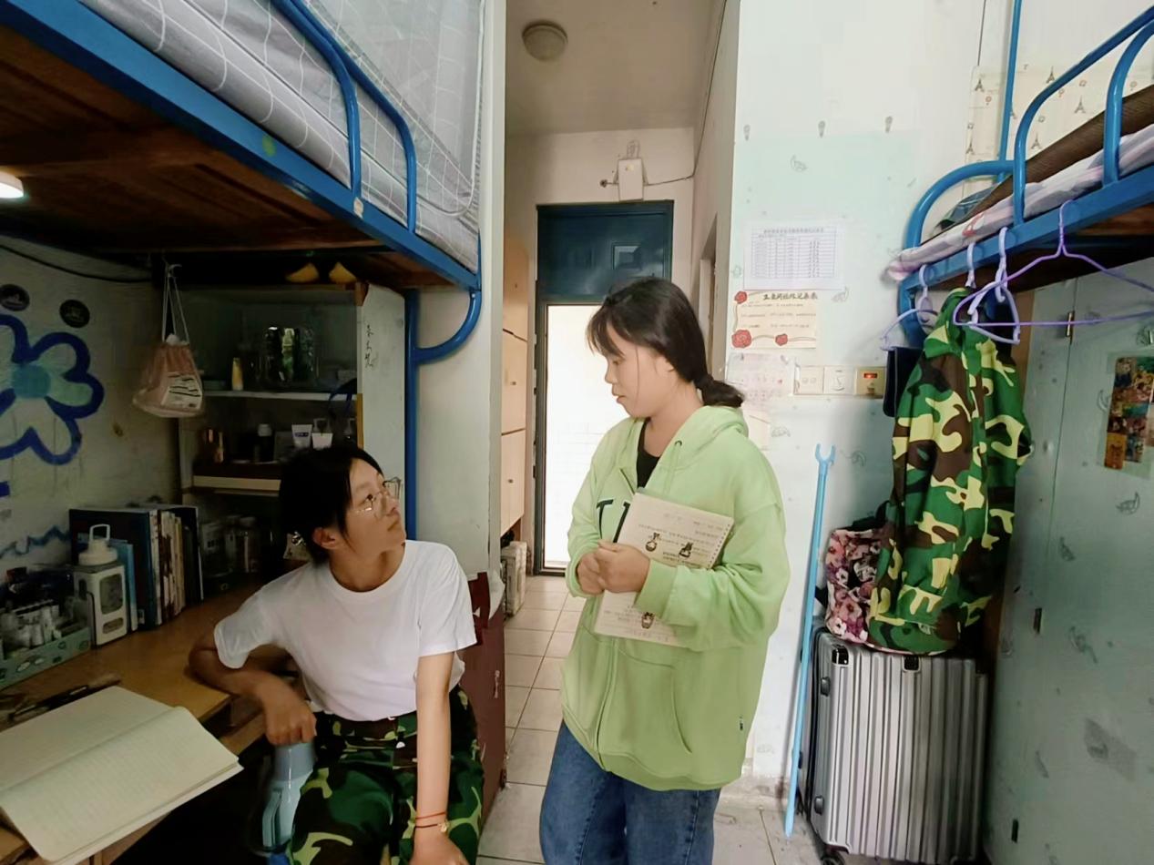 为了关心2022级新生的学习、生活情况,为新生答疑解惑,送去温暖,同时也给新同学提供一个了解、靠近党组织的机会,9月25日,艺术设计系党总支开展学生入党积极分子走访新生寝室的活动。