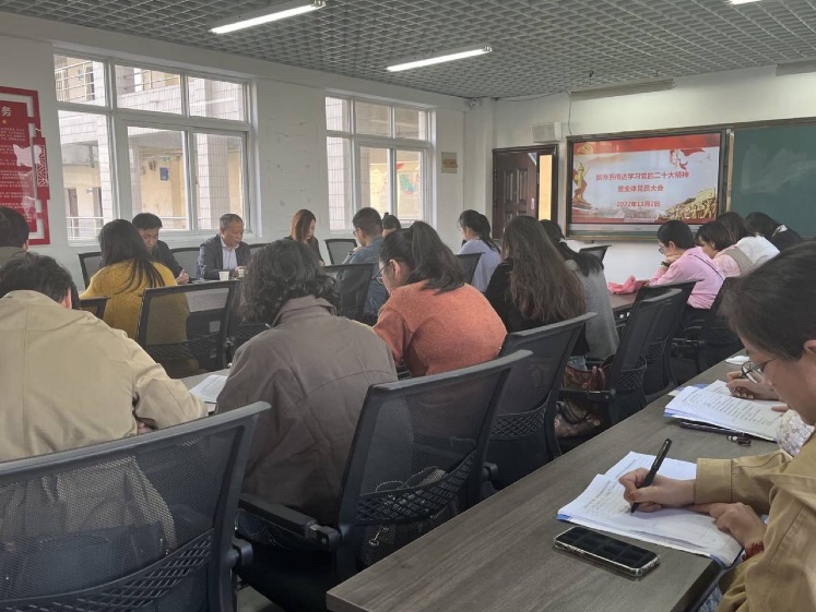 为学习贯彻落实党的二十大精神,11月2日下午,旅游与外语系党总支召开了传达学习党的二十大精神暨全体党员大会。
