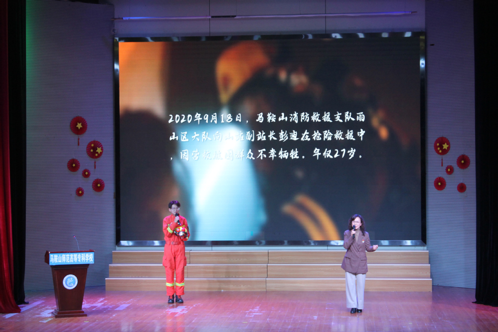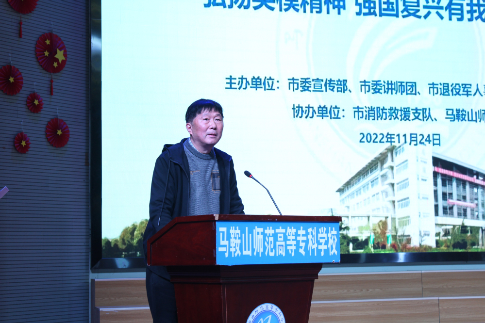 为了铭记英烈的丰功伟绩,传承和弘扬爱国主义精神,11月24号,由市委宣传部、市委讲解团、市退役军人事务局、共青团市委共同主办,市消防救援支队、马鞍山师范高等专科学校协办的“弘扬英模精神 强国复兴有我”主题宣讲报告会在马鞍山师专音乐厅隆重举行。