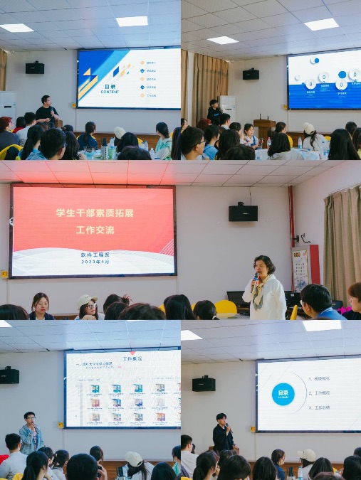 以文会友,以友辅仁。活动中,2021级计算机网络技术1班团支书何正鹏、2022级计算机科学与技术本科班团支书张创、2021级计算机网络技术2班班长朱经科、2021级软件技术1班班长黄子航等4位学生干部分别就团支部工作、班级日常服务管理、主题团日活动开展、文体活动组织实施等方面进行工作经验交流。不仅总结了工作中取得的成绩和经验,更激励广大青年学生干部要对党忠诚,加强自我提升,以严谨认真的工作态度和切实有效的工作方法高质量完成各项工作,在工作中锻炼成长。