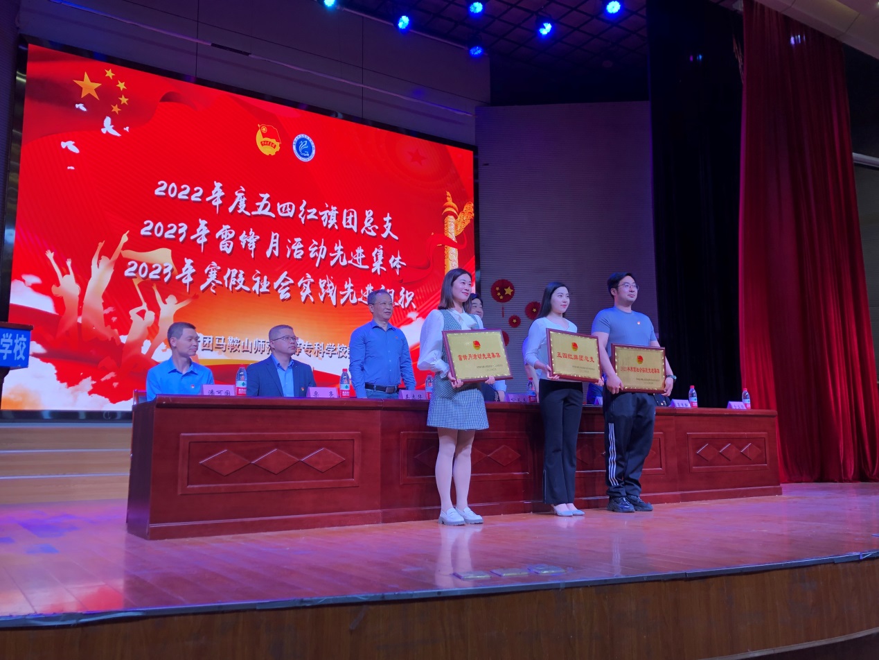 为弘扬五四精神、鼓励和表彰先进,5月4日下午,马鞍山师范高等专科学校在音乐厅举办2022-2023学年五四表彰大会,旅游与外语系团总支被表彰为校“五四红旗团总支”。
