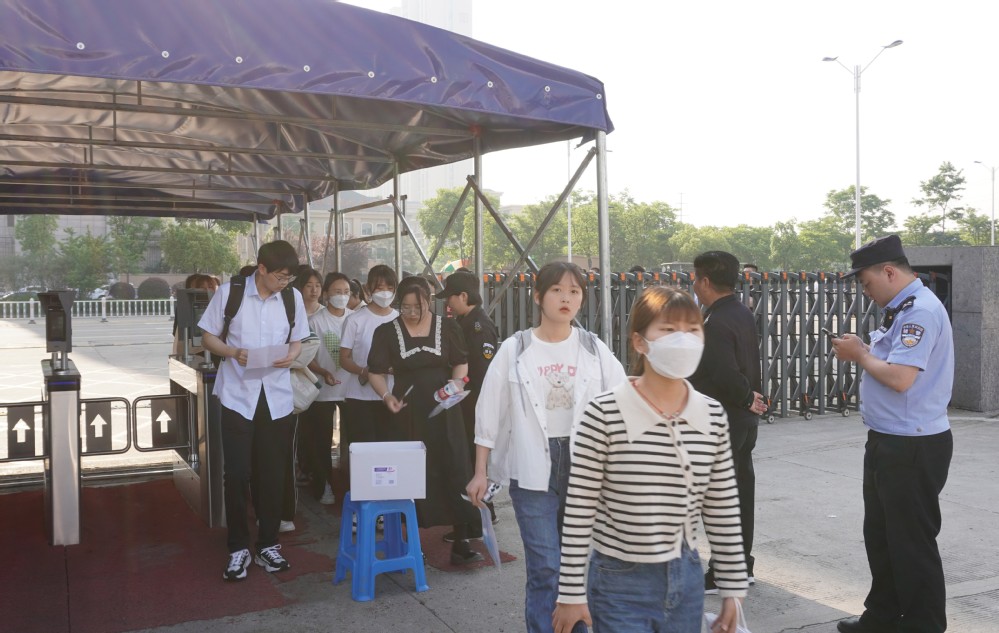 开考前,监考教师、面试考官、安保等各岗位工作人员按既定计划准时到岗,根据分工,各自做好相应的工作。围绕考场所在教学楼拉起安全警戒线,所有人员凭证进入,安排好一切考前准备工作,静待考生进场。