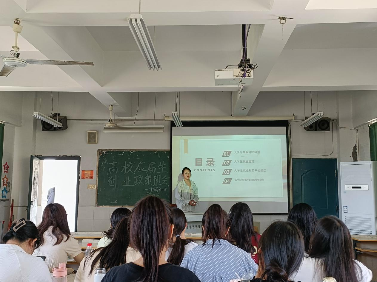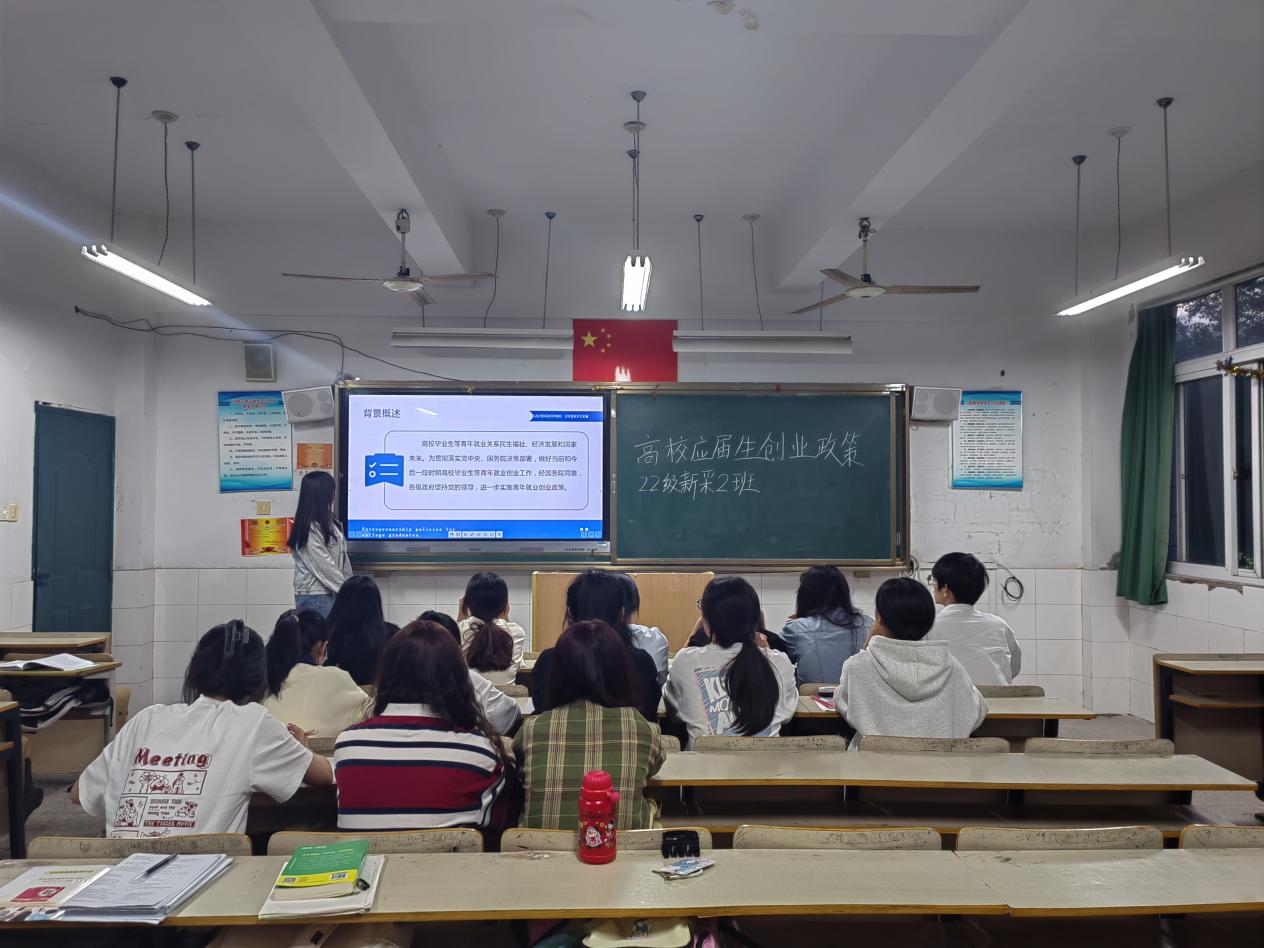 为贯彻落实党中央、国务院部署决策,进一步宣传高校毕业生就业创业政策,培养学生们锐意进取,奋发向上的创新创业意识,同时让学生了解就业形势,认识自主创业,引导其树立良好的择业观和价值观。5月22-24日,经济与社会管理系组织各班开展高校应届生创业政策班会。