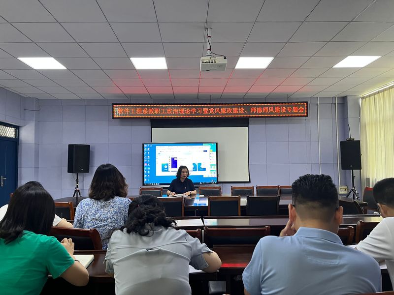 6月14日中午,软件工程系在行知楼601会议室召开教职工政治理论学习暨党风廉政建设、师德师风建设专题学习会。系党总支书记王莉娟出席会议,全体教职工参加会议。