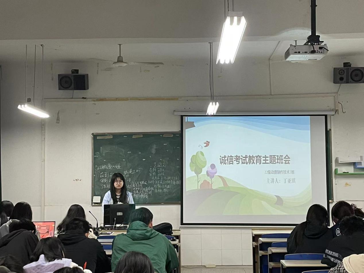 临近学期末,为增强学生们的诚信品质,提高学生的诚信意识,引领学生诚信考试,诚信做人,艺术设计系于5月24日至6月24日在丹青楼各教室组织2021级、2022级各班开展了“以诚取胜——诚信考试教育”主题班会。