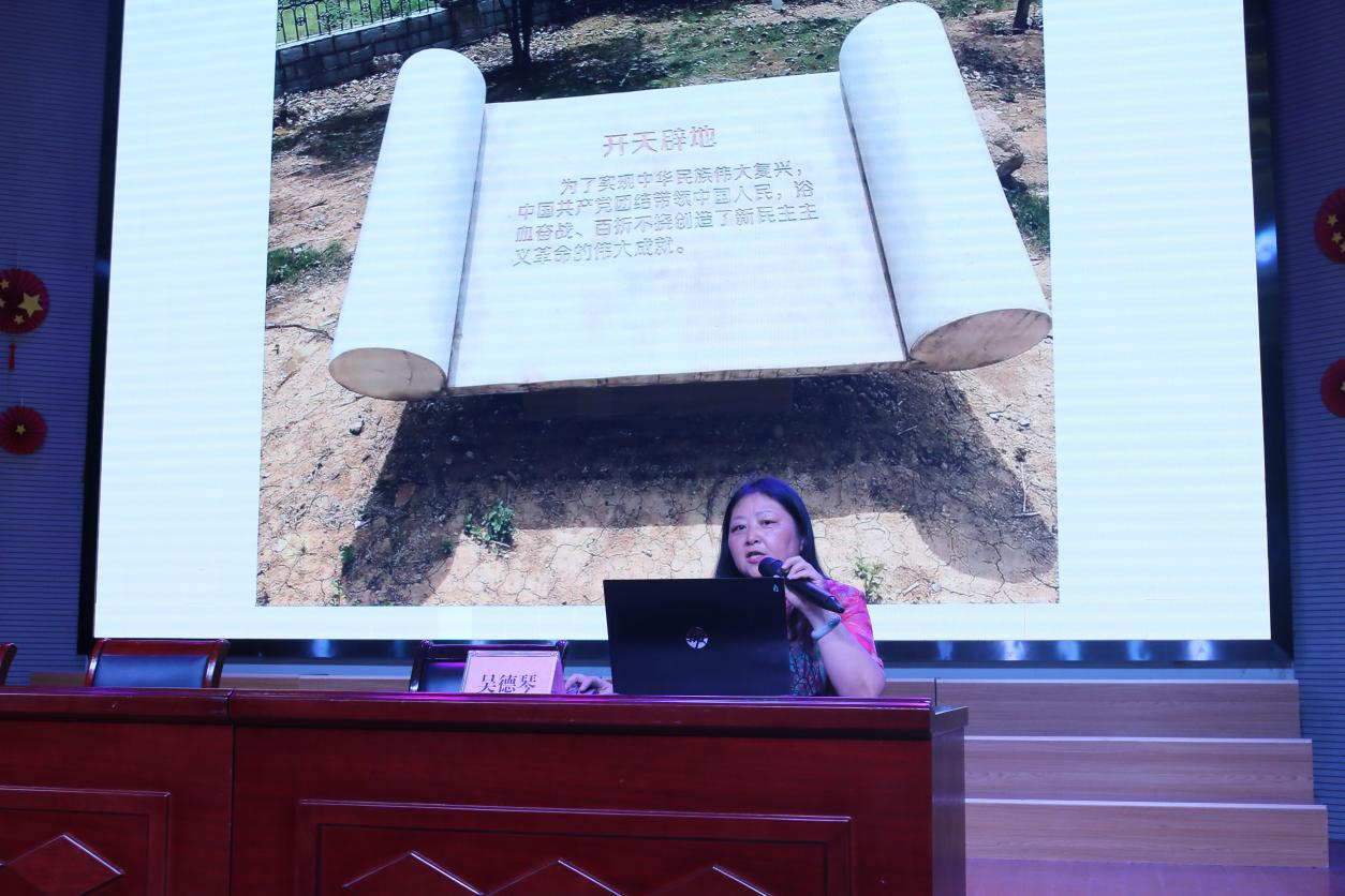 本次党课立足于对学校红星文化广场内涵的解读,党课上,吴德琴由《共产党宣言》开篇,阐述马克思和恩格斯为世界上第一个共产党组织——共产党主义者同盟所撰写的纲领对中国共产党的建立意义深远。之后,深入讲述了党所经历的开天辟地、改天换地、翻天覆地、惊天动地的四个阶段,并以每个阶段的突出历史事件,说明了各个雕塑的意义。她最后强调,作为新时代的党员,我们要弘扬伟大建党精神,自信自强,守正创新,踔厉奋发,勇毅前行,为全面建设社会主义现代化国家、全面推进中华民族伟大复兴而团结奋斗!