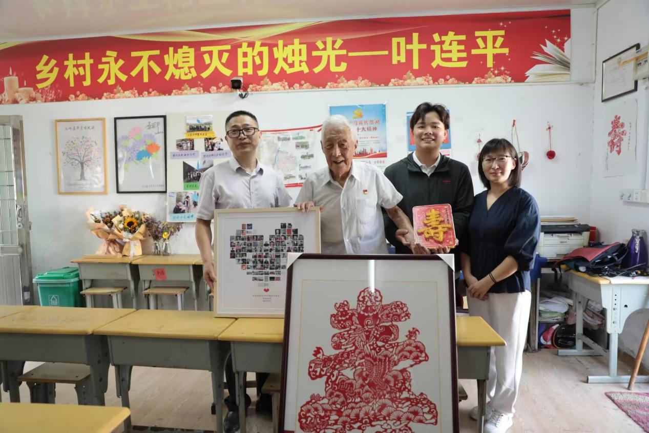 时值第39个教师节来临之际,涂意虹为叶连平老师精心准备了“寿”字剪纸作品和纪念照,祝愿叶老师教师节快乐!其中,剪纸作品是涂意虹邀请我校优秀毕业生、非遗剪纸文化传承人刘广军所做,作品蕴含锦鲤、仙鹤、寿桃等多种祥瑞,表达了对叶老师的深切祝福;纪念照由99张图片组成心形图案,正中心是涂意虹和叶老师的合照,四周则是涂意虹受叶老师教诲,不断成长的相关图片。听着涂意虹的成长汇报,叶连平老师欣慰地说道:“青出于蓝而胜于蓝!”并写下“仰望苍穹,脚踏实地”给予勉励。