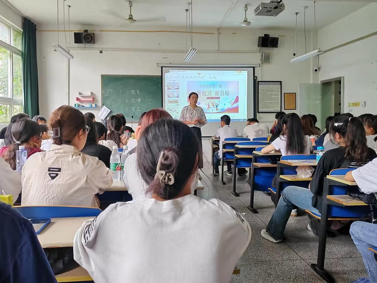 其次,辅导员们在各自班级以“新起点 新目标”为主题开展了班会活动。新生辅导员们围绕《学生制度汇编》内容,向同学们解读学校各项规章制度,通过思想政治教育,让学生在刚进校就深入了解学校的规章制度,养成良好的习惯,树立端正的学风,也为自己后期自身发展提前做好规划。
