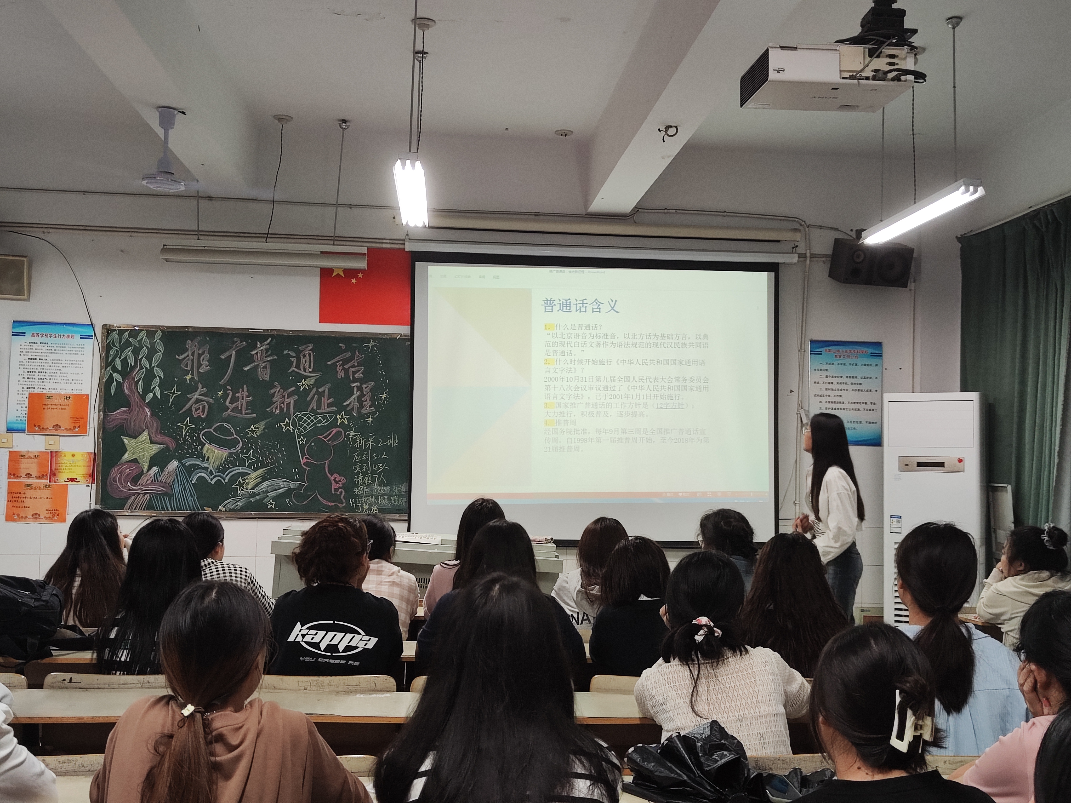 为推广普通话,形成说普通话的良好风气,大力宣传国家语言文字政策法规和规范标准,9月14日,经济与社会管理系积极组织各班开展“推广普通话 奋进新征程”主题班会。