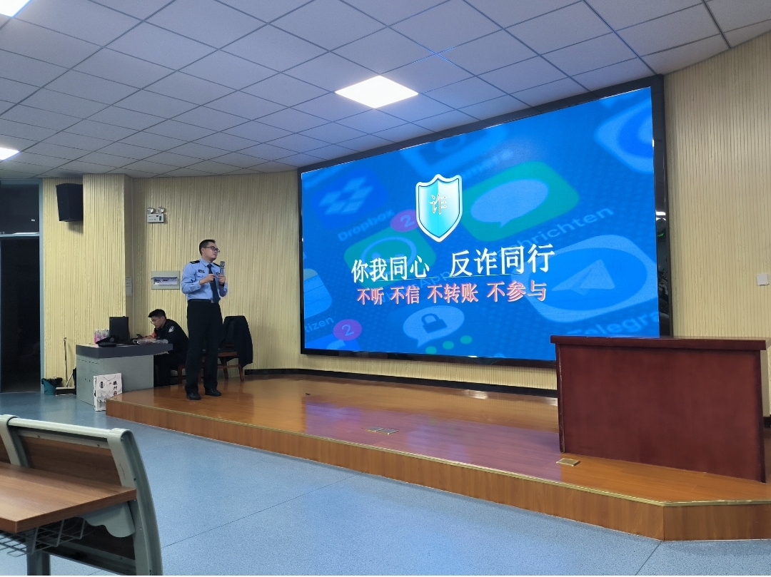 来自反诈中心的曹警官详细向同学们讲解了什么是电信诈骗,电信诈骗的起源以及我国当前电信诈骗案件的形势,让同学们对网络电信诈骗有了全面的了解。他还用视频的方式向同学们生动讲述了身边的典型诈骗案例以及常见的诈骗手段,详细讲解不法分子利用微信、电话、手机短信等方式向群众实施网络诈骗,引导同学们要提高微信、QQ聊天、手机支付、个人身份等重要信息的保护意识,不要轻信他人,对陌生人要保持警惕。