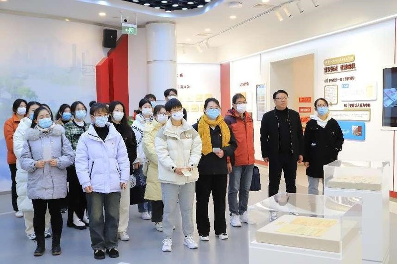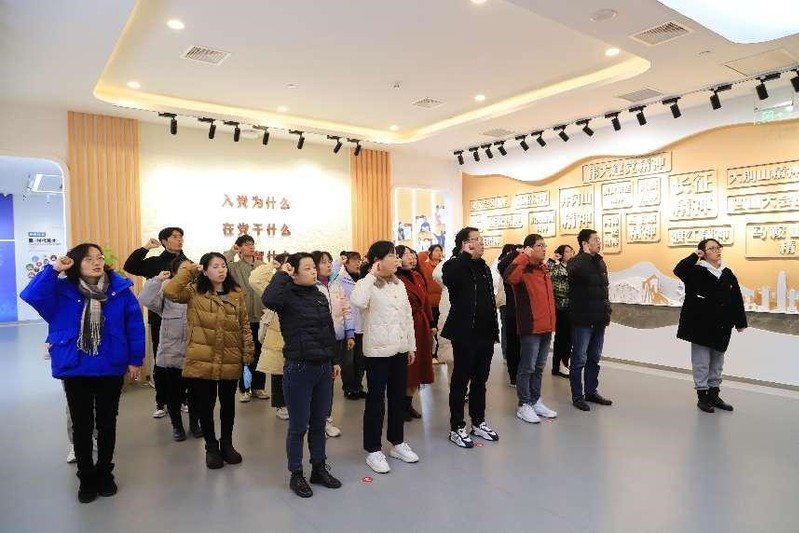 在工作人员的带领下,全体党员参观了习近平新时代中国特色社会主义思想、“红色印记”、汇•人才智库、非凡这十年•飞阅马鞍山等多个展厅,认真聆听了讲解员的详细讲解,学习观看历史文献档案和影像资料,对党的光辉历史有了更加深刻的理解,真切感受到在党的坚强领导下,马鞍山发展的巨大变化,特别是过去五年的发展和新时代十年的辉煌成就。在庄严的党旗下,师生党员重温入党誓词,重忆入党初心。
