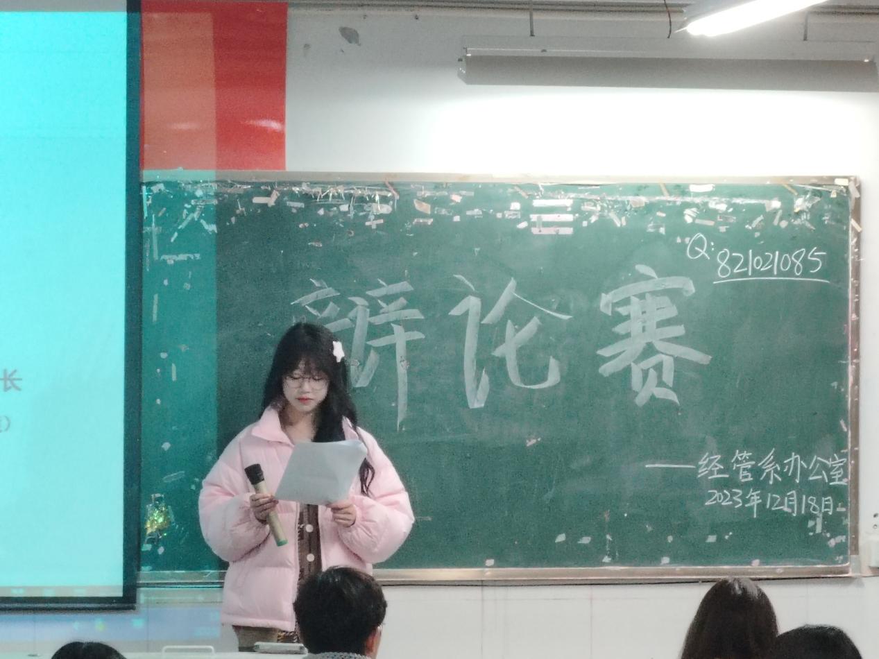 为丰富学生的课余生活,增加学生的思想交流,促进校园文化的建设,12月18日晚6时30分,经济与社会管理系积极组织开展校园辩论赛。