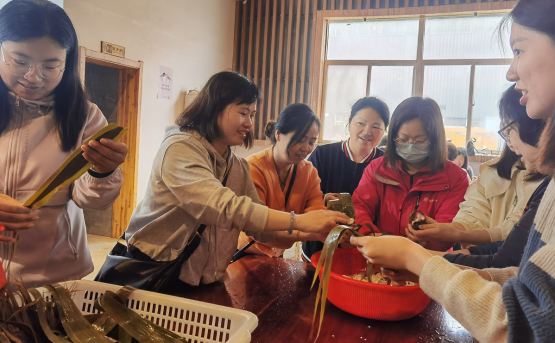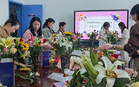 “书香三八•花语传情”团建活动中,老师们相互推荐图书,分享阅读的价值,随后动手完成插花制作,交流分享插花技术。“丹阳湖盛农农场农事体验活动”中,老师们体验了食品从农田到餐桌的过程,增强了食品安全的意识。