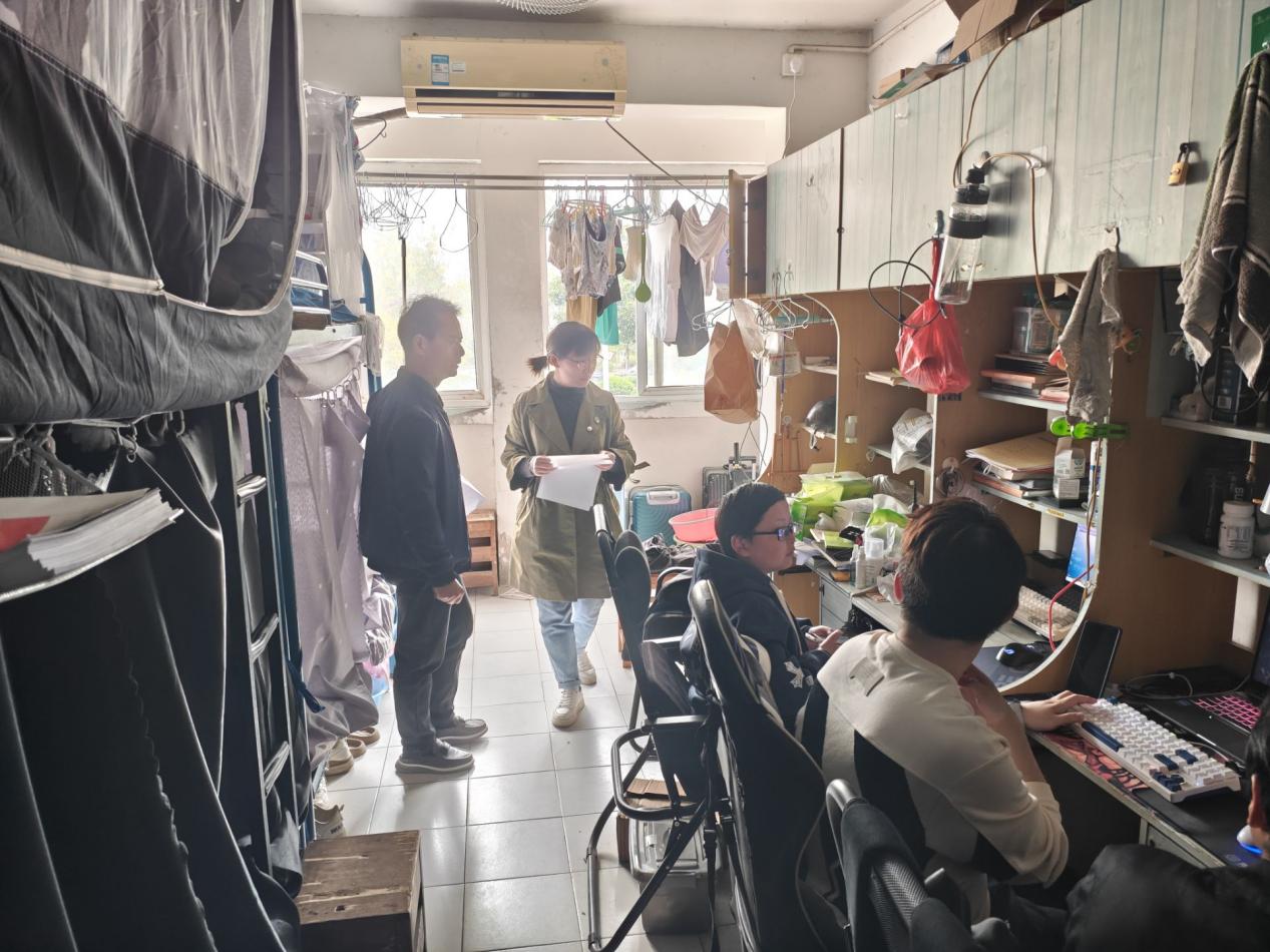 本次检查分两批次进行,对该学院雨山校区96间学生宿舍和滨江校区59间宿舍进行了全面细致排查。根据学校宿舍管理要求,结合学院实际情况,细化检查标准,分楼分层逐一进行检查。活动中,重点排查了违规电器、明火、私拉电线等安全隐患问题,对于发现的问题及时登记、及时整改,并做好台账管理。对于物品摆放杂乱、床头悬挂衣物以及厕所卫生等问题,当场指出并提出限时整改意见,由相关辅导员督促落实。走访中,陈小凤一行还注重了解了学生的学习、生活情况,与学生谈心谈话,了解思想动态,询问学习生活中的急难愁盼问题。