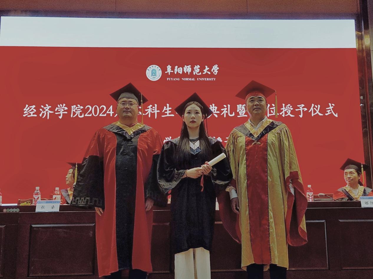 本网讯 5月19日, 我校与阜阳师范大学联合培养的电子商务专业2024届毕业生,在经管学院商贸教研室相关教师的带领下奔赴阜阳,参加阜师大经济学院“2024届毕业生典礼暨学士学位授予仪式”。