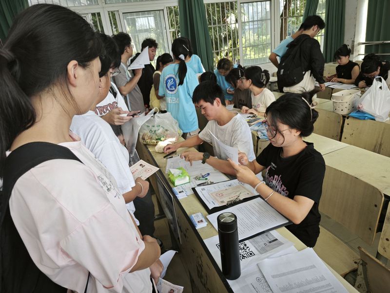 早上六点四十,志愿者们早已在校门口整装待发。他们身穿统一的志愿者服装,面带微笑,用满腔的热情迎接每一位新生的到来。志愿者们细心引导新生完成入学手续,帮助他们熟悉校园环境,解答各种疑问。从宿舍安排到校园导览,每一个细节都充满了学院对新生的关怀和期待。学院领导们为了确保迎新工作的顺利进行,亲自坐镇报到点,认真细致地协调着新生的报到工作,确保每一位新生都能顺利完成入学手续。同时,学院领导们还时刻关注着迎新现场的动态,及时调整工作策略,以确保迎新工作的高效有序。
