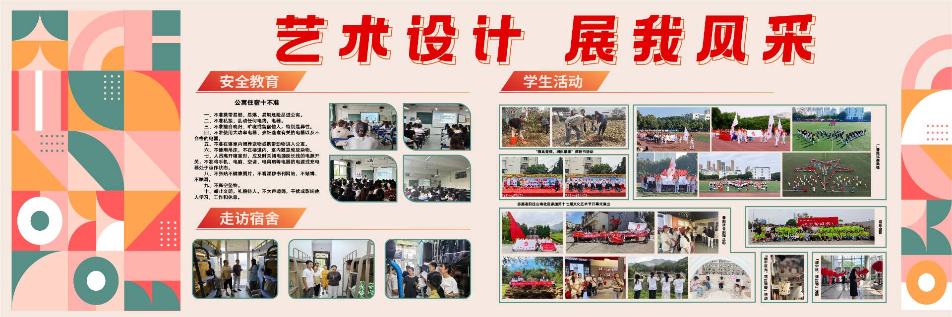 为了让新生尽快融入学院的文化氛围,一场创意的盛宴在艺术设计学院的每一个角落悄然上演。学院大厅里,一系列由师生作品构成的展览,展示了学长学姐们的才华与成果,从色彩斑斓的展板到充满想象力的装置艺术,每一处细节都透露出学院对新生创意精神的鼓励与期待。学生公寓内,艺术设计学院的文化墙上,一幅幅学生活动的生动场景和获奖证书照片,令新生对大学生活的愈发向往。