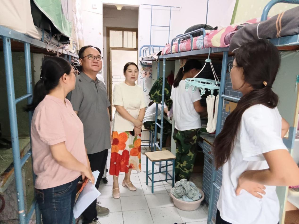 本网讯 为深入了解2024级新生住宿情况、思想动态,排查安全隐患与解决存在问题,为她们提供良好的生活环境,9月19日,文化与传媒学院党总支书记刘明娟、副书记戴小兵带领新生辅导员深入新生宿舍走访慰问。